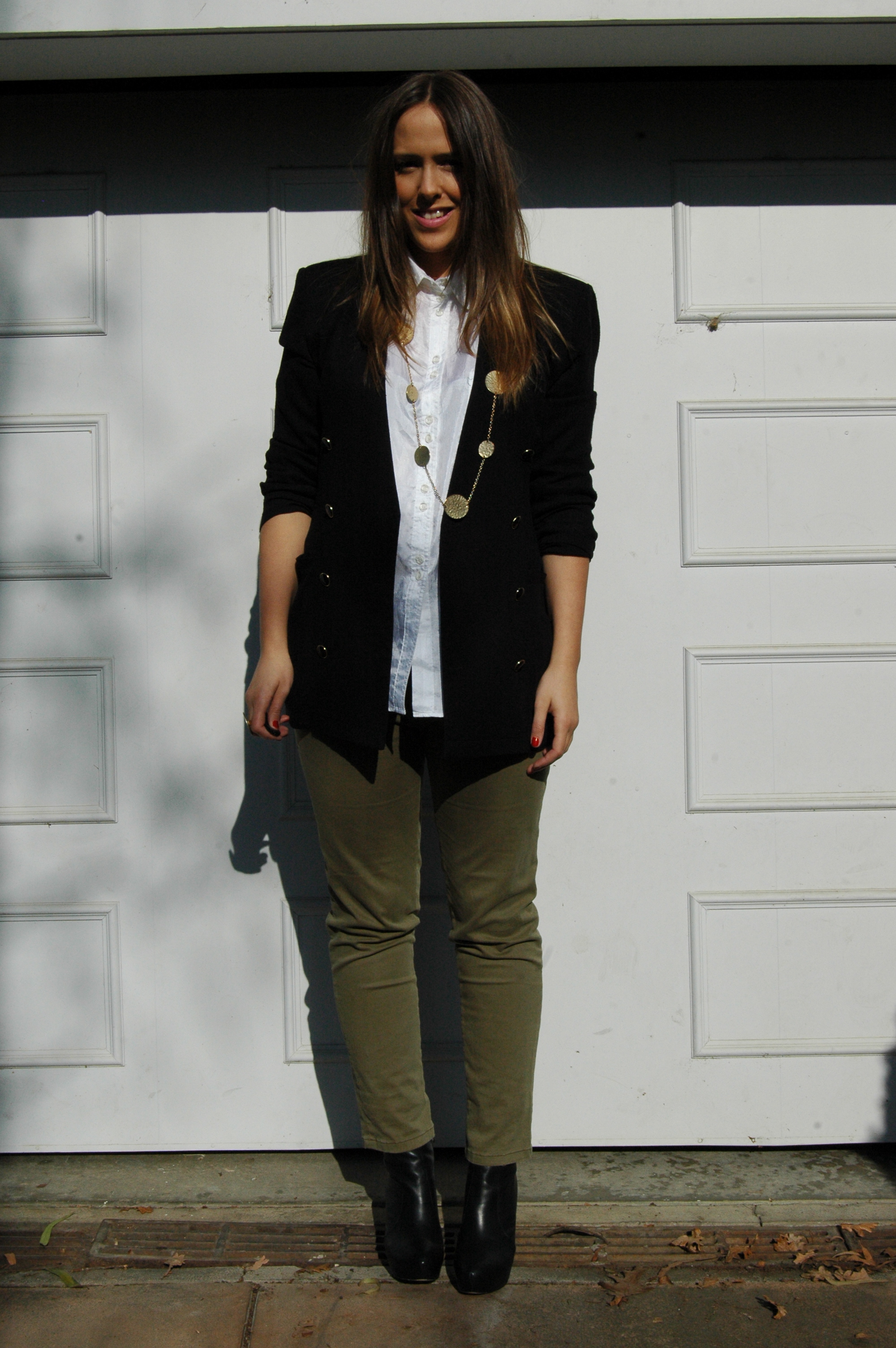 I can’t say i’ve ever attempted to be sartorially ‘hermaphroditic’ before. I usually try to walk the fine line between pleasantly feminine and uber girly (meaning I wear dresses and skirts but generally steer clear of florals). So today I busted out of my comfort zone and tried to tap into my masculine side. The result? To be honest I felt a little ‘box-y’ wearing a blazer with a shirt. Might try it again with some tweaking.