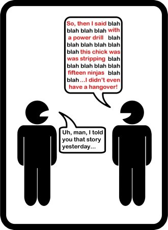 Storytelling is riddled with potential for awkward land mines. Commonly, you’ll start telling an amusing anecdote and whilst mid-sentence, the ‘listener’ retorts ‘You already told me that’. Boom. Shut down. There’s no recovering. My sister often does it to my dad. Worse than this is when you start telling a story only to be told mis-sentence that you’re repeating a story the ‘listener’ in fact, told you in the first place. Anecdotal plagiarism, pretty bad. But the worst is telling a story you were sure was hilarious, only to have it fall flat and be met with blank stares, then comes one of the most awkward statements known to man: “I guess you had to be there….”. Ick.