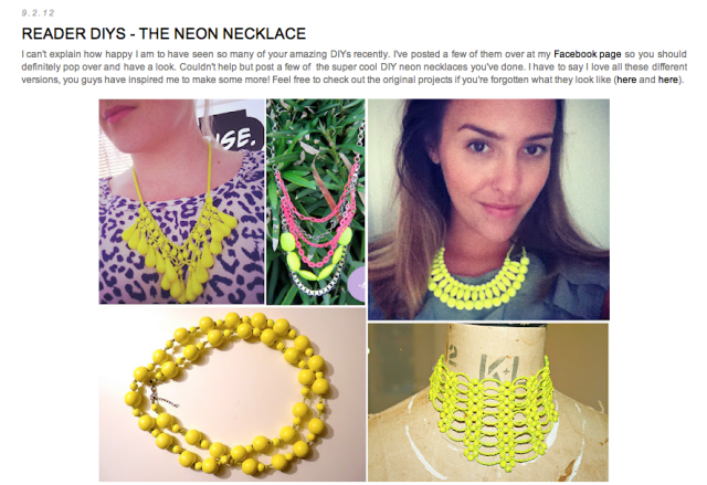 Anyone who has read this blog lately would have noticed my obsession with all things Do It Yourself fashion. Well Geneva at A Pair & A Spare is one of my favourite DIY heroes and is ‘kind of a big deal’ (well she does blog for Harper’s Bazaar). So I was pleasantly surprised to see my face on her blog in a post about reader DIYs. I’m famous!