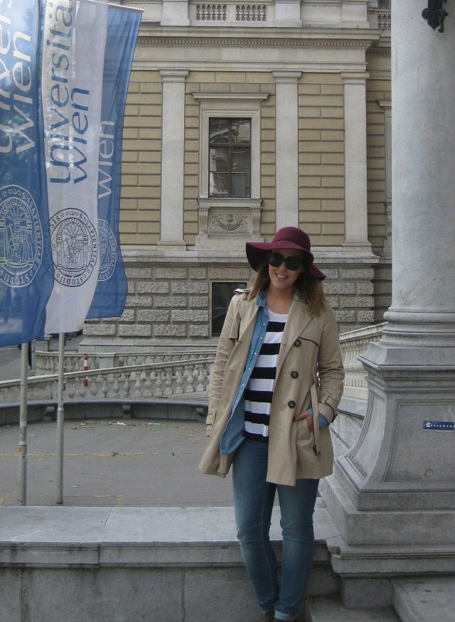 And so, on a day out in Vienna I paired an open chambray shirt with my blue jeans (under a trench coat).
