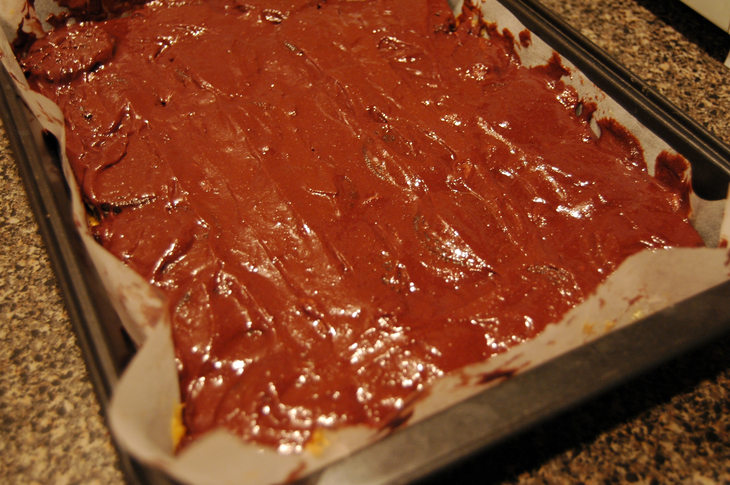 First preheat the oven to 180 degrees and prep the cookie dough as per instructions on the packet. Then smoosh the dough into a lined tray.