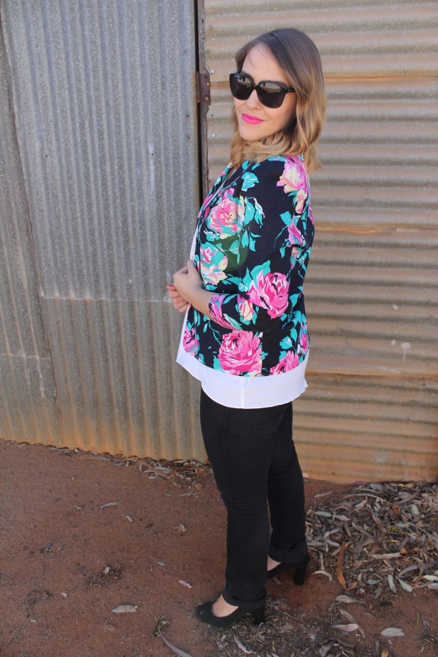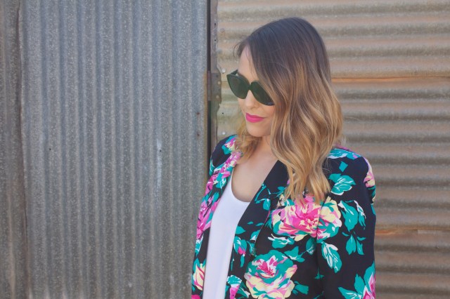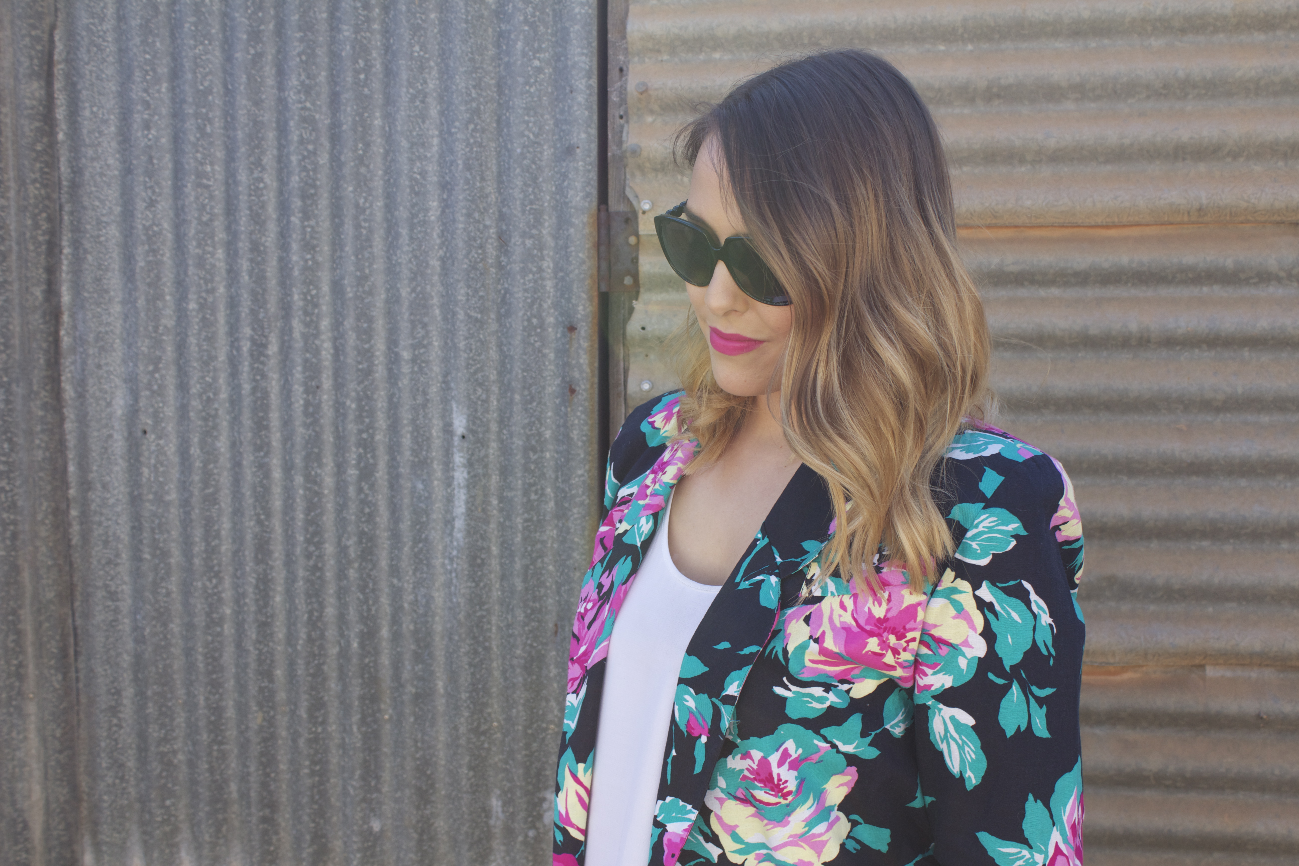 Few things satisfy me more than when I find an on trend* item of clothing at a second-hand store. The floral blazer has been doing the rounds for a while now, as have floral pants. I bought this blazer from an op shop in Melbourne recently for about $15 which is pretty steep for second-hand but worth it I think. The pink goes perfectly with my Nars Schiap lipstick, thus appealing to my slight tendency towards colour-coordination OCD.
