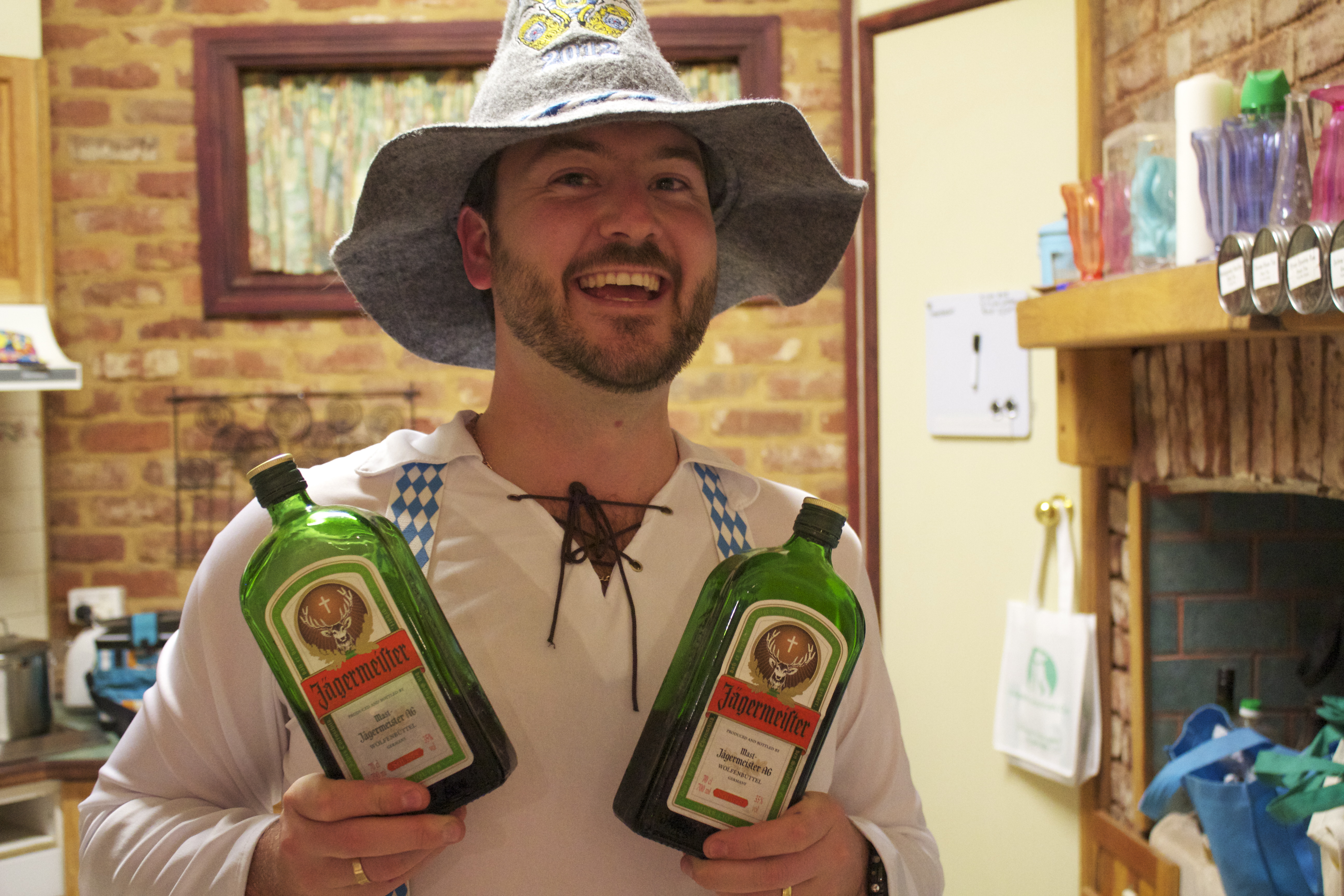 Aaron made a rainbow vodka jelly cake using one and a half bottles of paint stripper vodka: