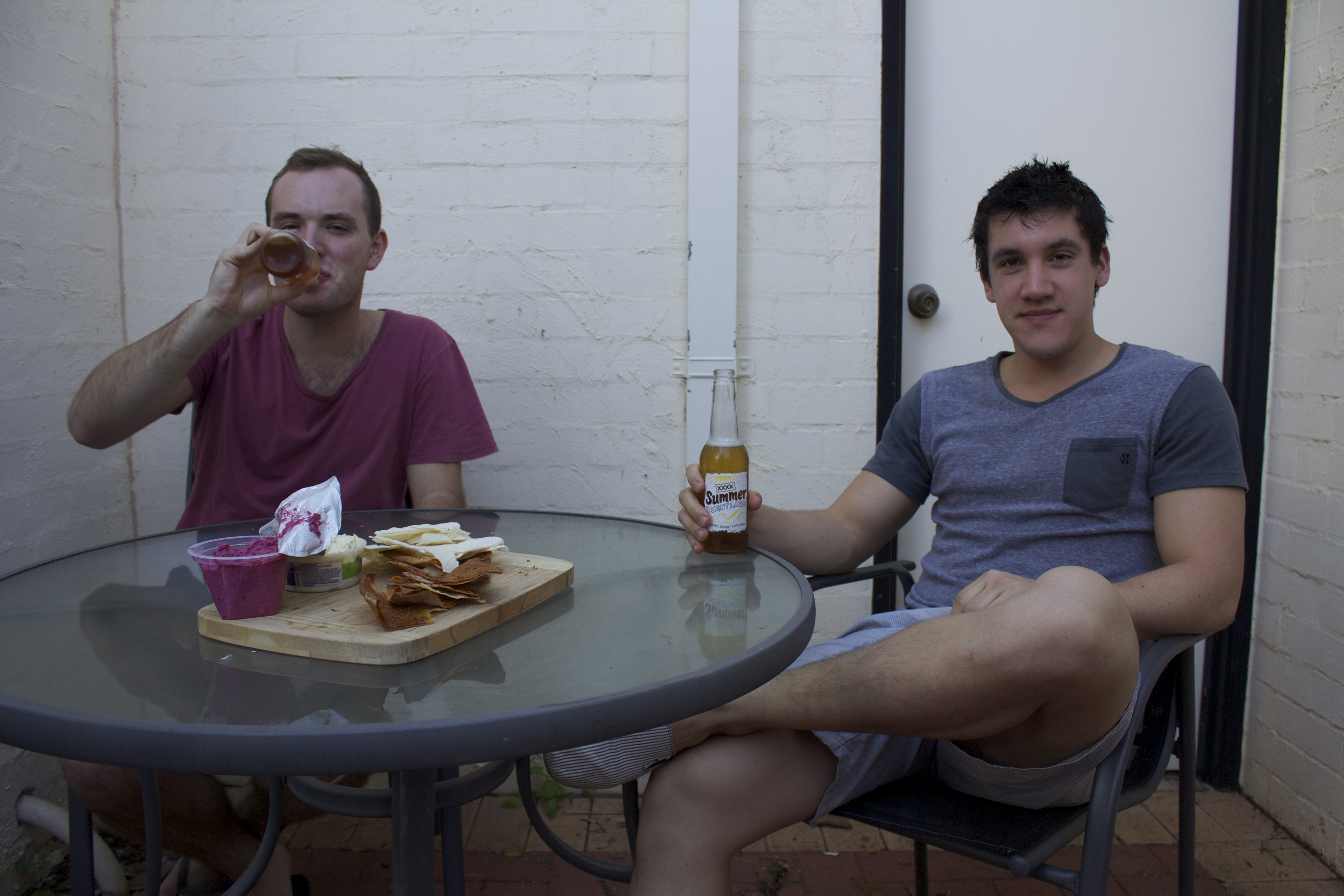 We sat in our ugly sparse courtyard and ate dips and drank beers until we got cold.