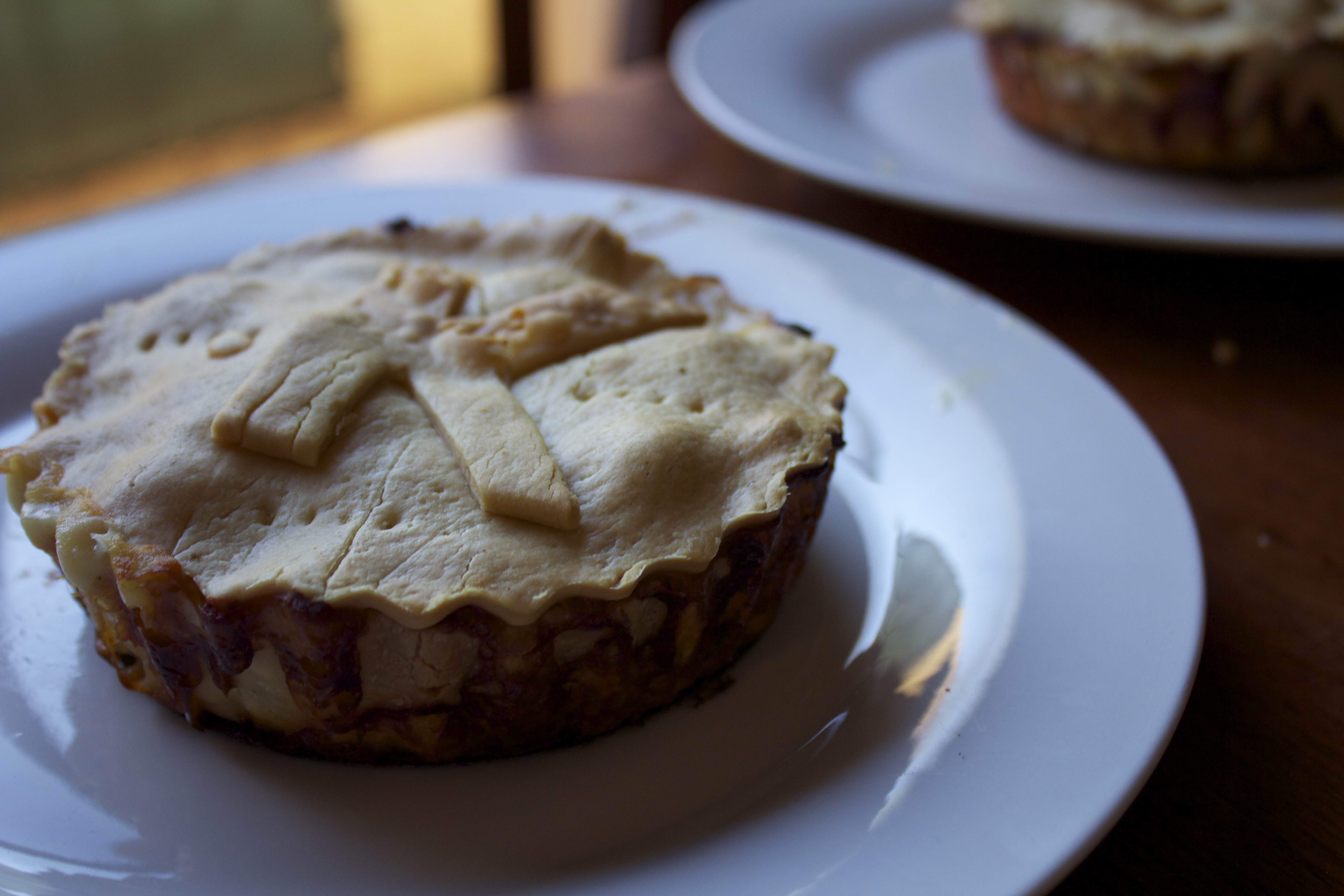 I followed exactly the same recipe and method as last time, just on a smaller scale and I added a lid to the pie (and pastry initials, which I believe are legally required when baking with pastry).