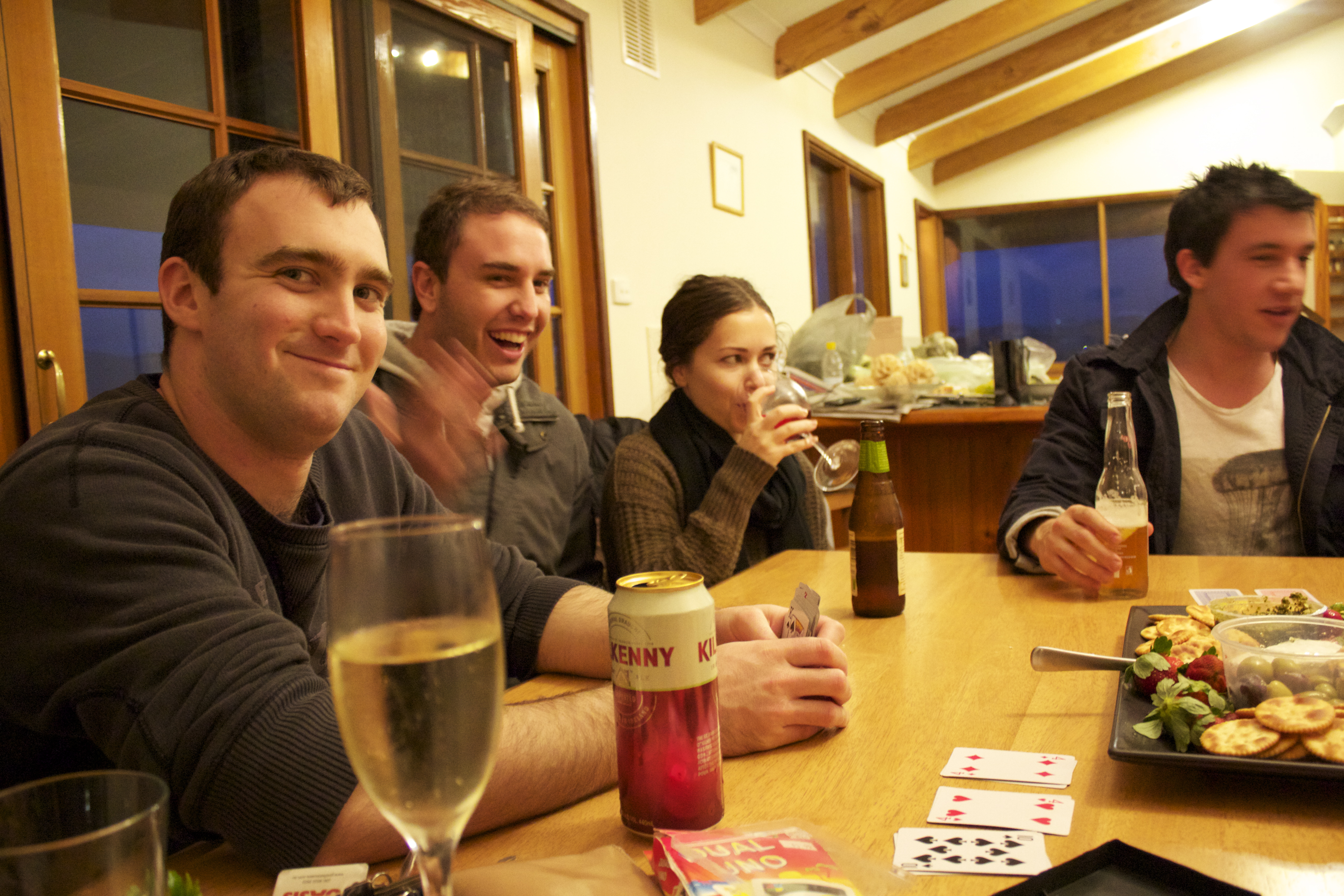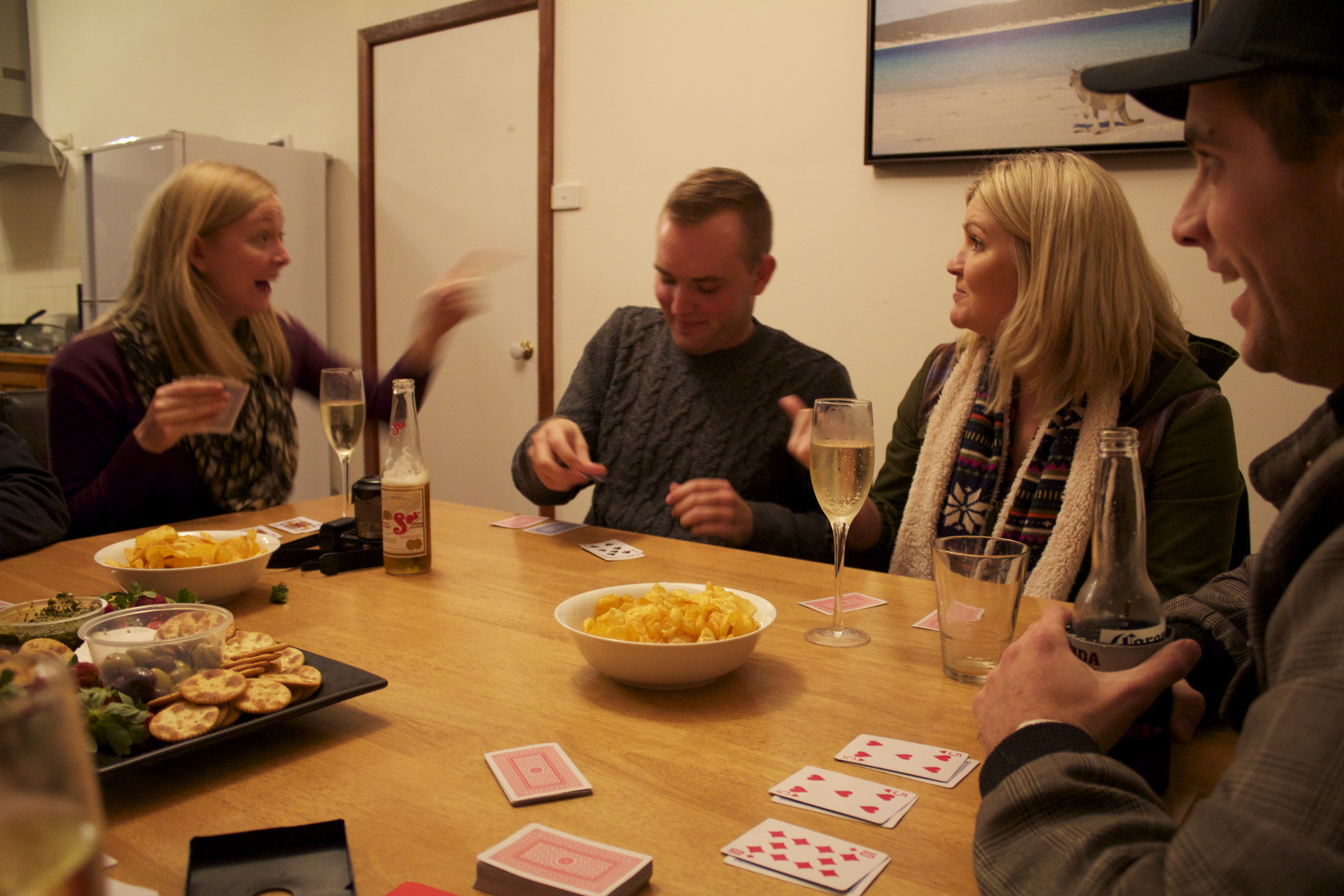 We arrived back at the house with enough food and drink to sink a battleship. The mini golfers were set up at the table playing cards. Bec, having sorely lost that afternoon, was regretting the ‘I had fun at Esperance mini golf sticker’ on her lapel. I took comfort in my decision to walk along the beach instead of play the wretched game. We cracked some sparkling wine, snacked and played cards.