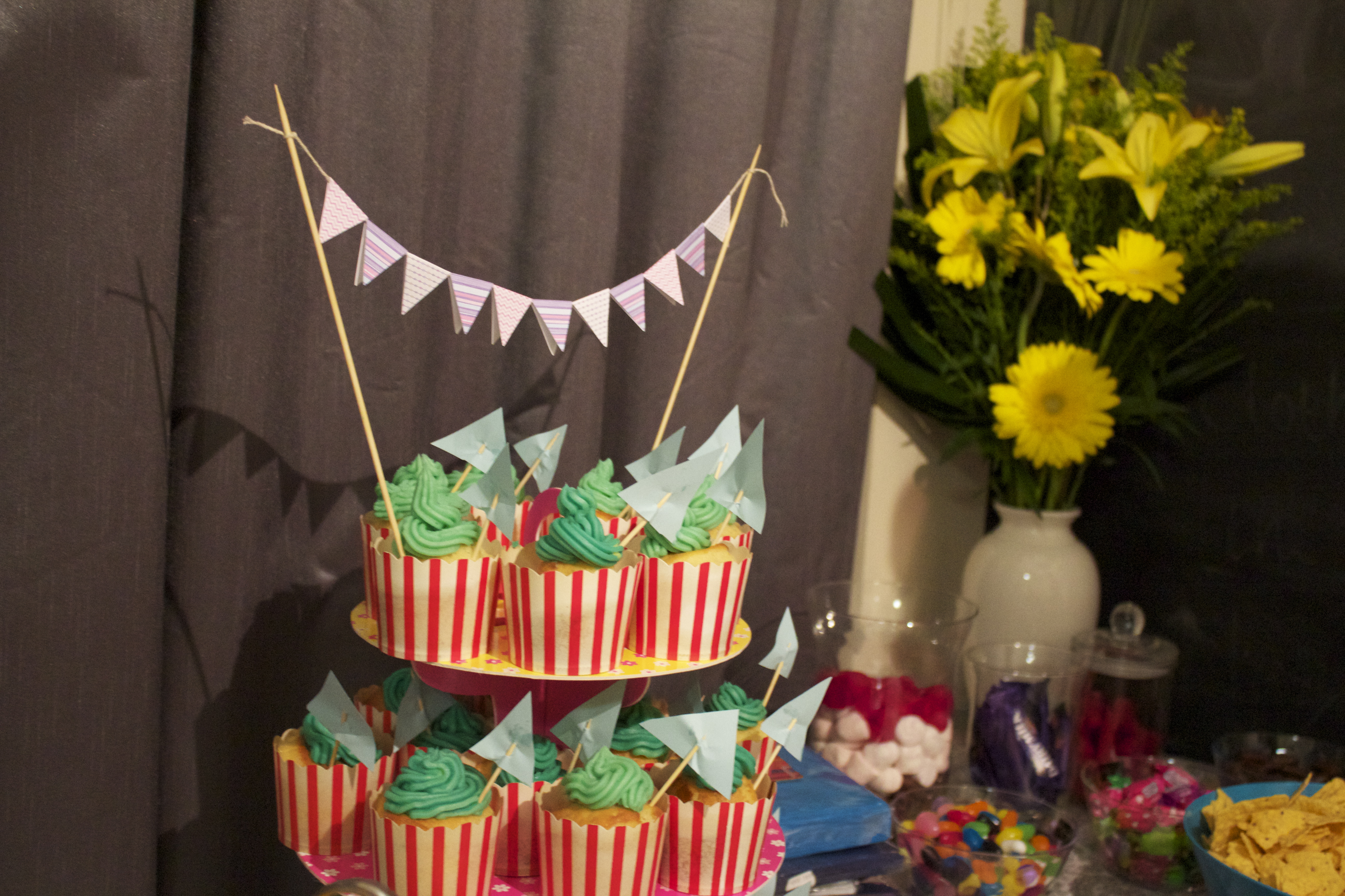 I made some simple vanilla cupcakes, which were meant to end up looking like boats. But my piping bag split, the icing looked more green than blue and I couldn’t find any decent paper to make the sails. Kind of an epic fail: