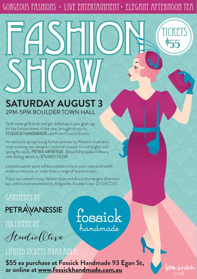 When my friends at Fossick kindly invited me to be part of their fashion show I worried that in an attempt to swan graciously on the catwalk I would fall flat on my ‘washed-up-never-was-really-a-model’ ass. Not unlike Carrie when she falls over on the NY Style catwalk in a D & G trench coat and sparkly undies and is quickly mowed down by Heidi Klum.