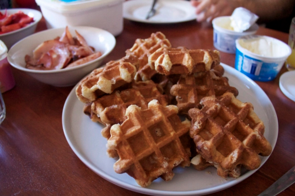My lovely housemates and friend Claire teamed up and got waffles, ice cream, maple syrup and bacon. This meant a lot to me as most people who haven’t tried the combination think maple syrup and bacon will be a dismal failure. HA!
