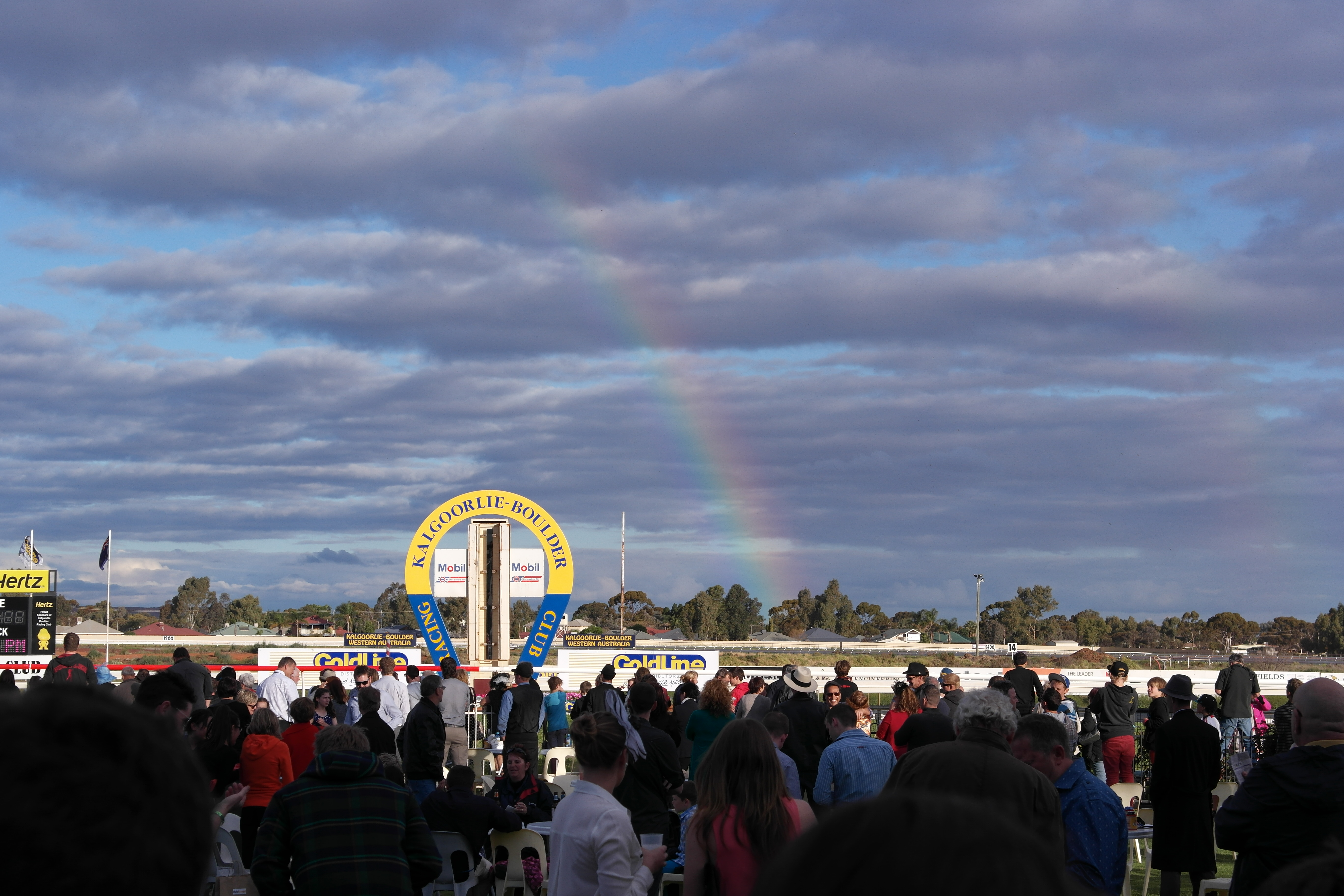 Then headed to the straight to watch a couple of races (we actually saw horses! and a pretty rainbow).