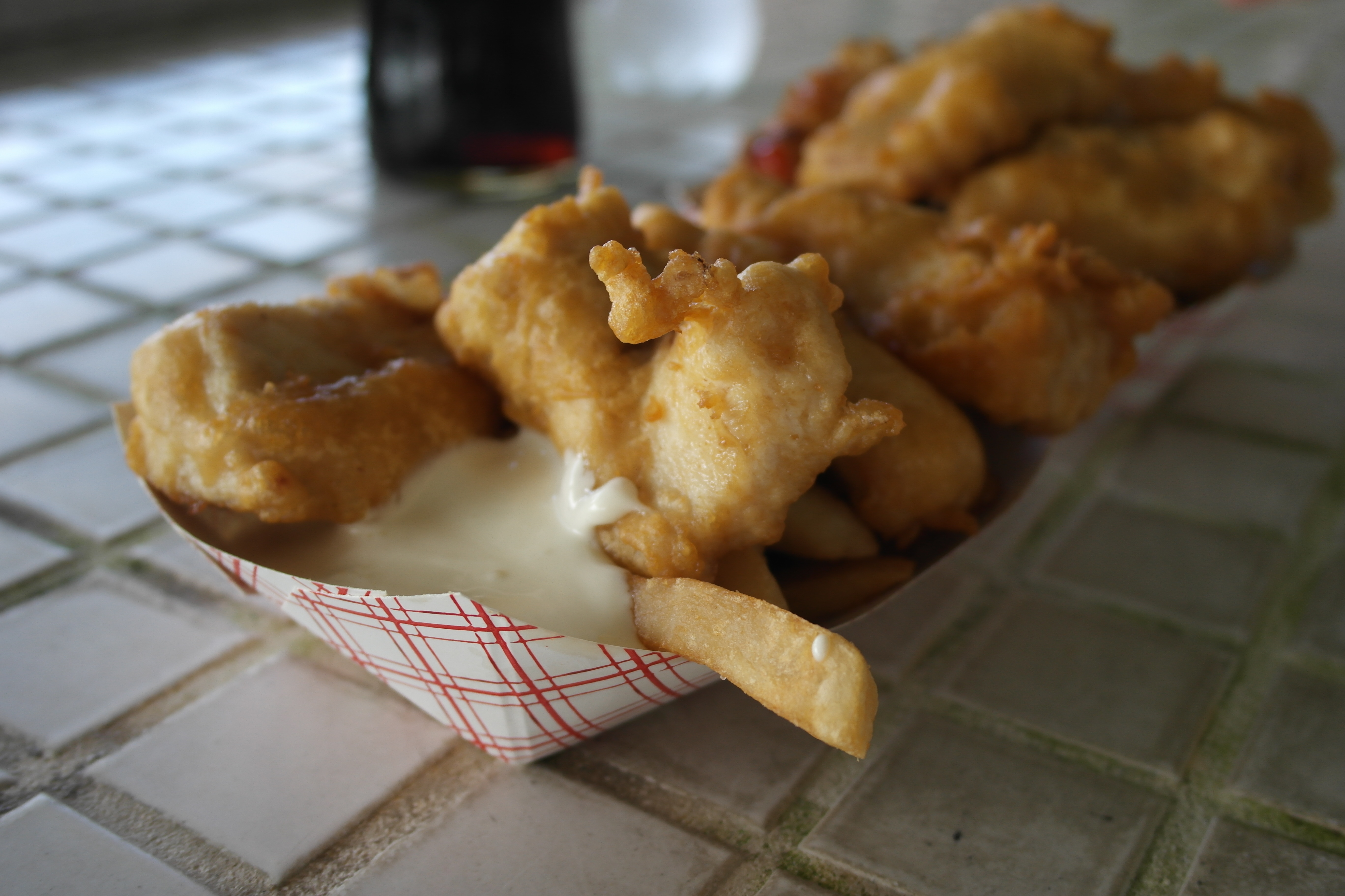 We joined the end of a long line, a testament to how good the food is, which moved quickly as piping hot fresh battered fish and chips were dished up to the crowd.