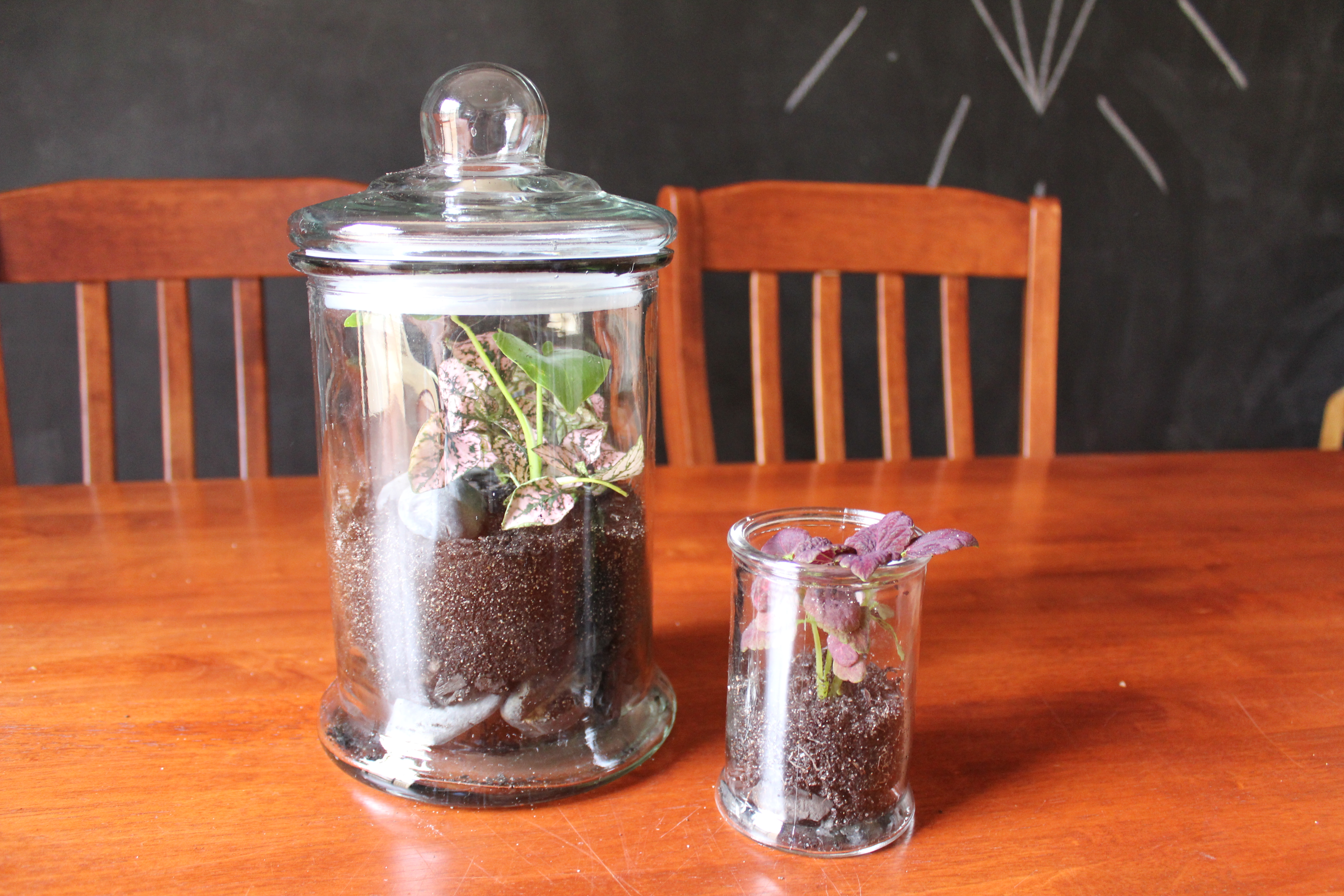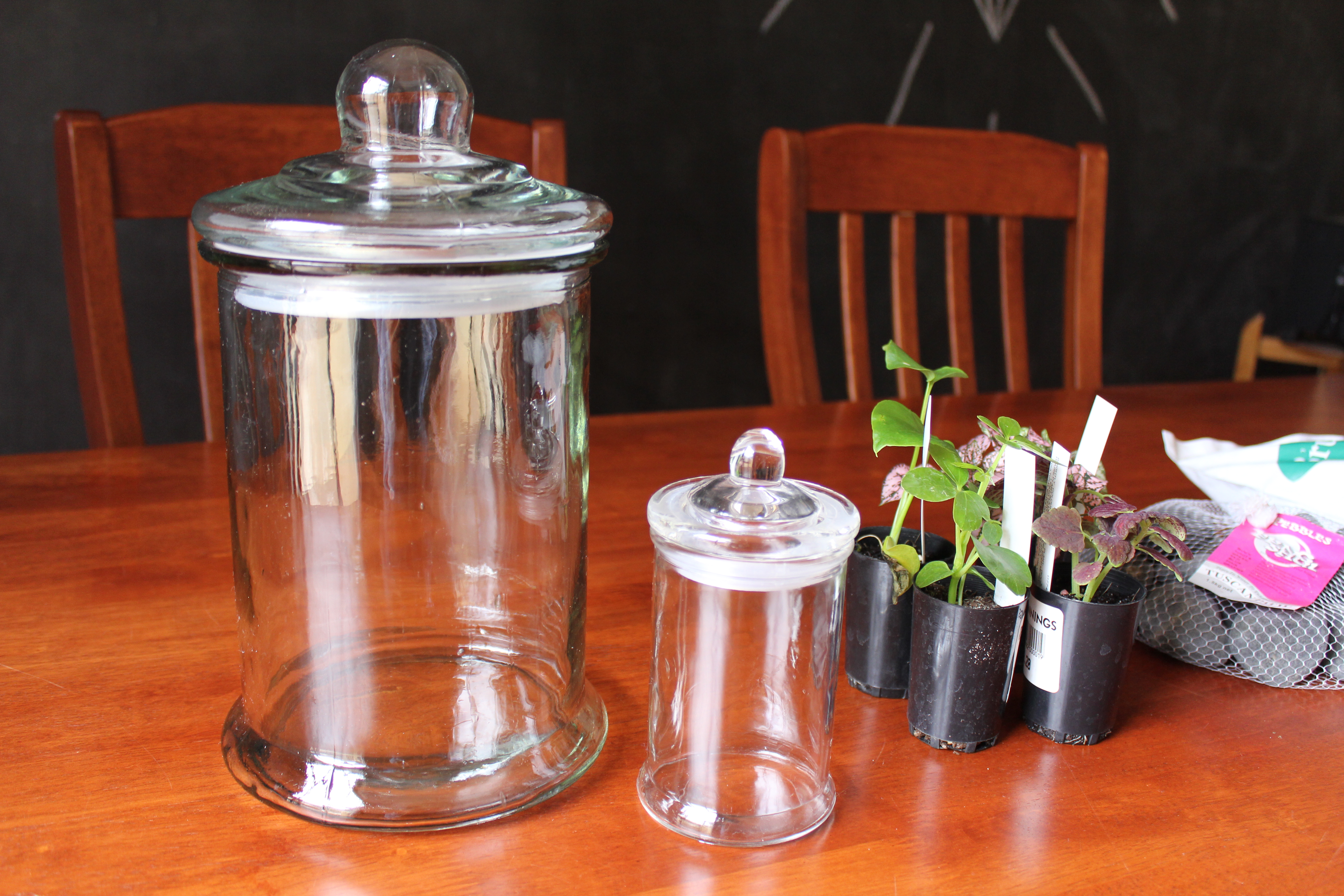 As you can see I’m yet to add a creature, I’m thinking a dinosaur might be cute. It’s now Wednesday and the big jar with the lid is nice and condensation-y like a little greenhouse. The smaller jar I have watered.