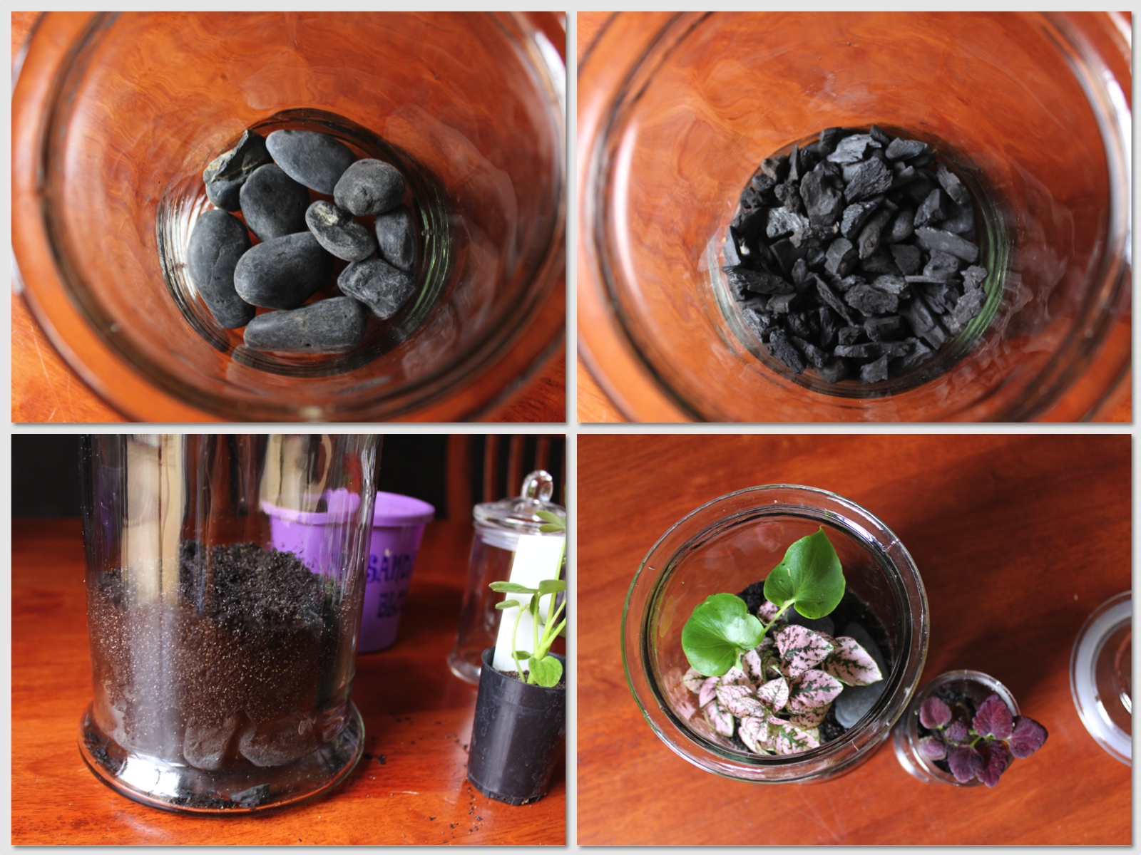 On Sunday I made a terrarium. I’ve wanted to ever since seeing some very impressive ones at the Finders Keepers Market in Melbourne in October (was that really only last month?!). The ones there had adorable little figurine animals and people. One of them had a tiny table and chairs that looked as though tiny people had just vacated after having a tiny garden party. I like tiny things. As a child I was obsessed with the miniature Tudor Village at the Fitzroy Gardens. We always used to walk through the Fitzroy Gardens on the way to and from watching Carlton play at the MCG…. Anyway.