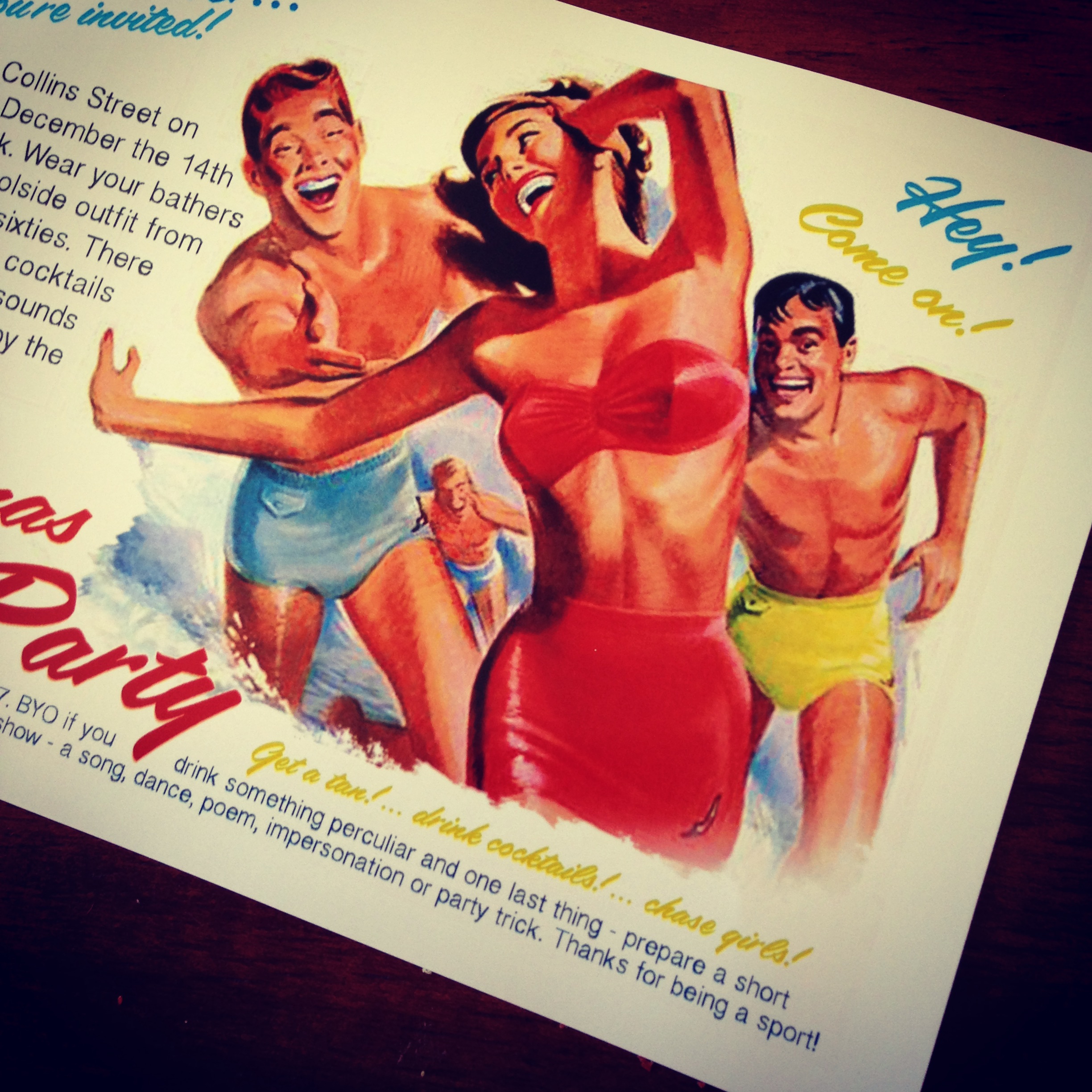 Anyway, not long ago I received an invitation in the mail to Flash and Ellenmary’s retro pool party, that’s right, a paper invitation. So classy. I’d already been one upped.
