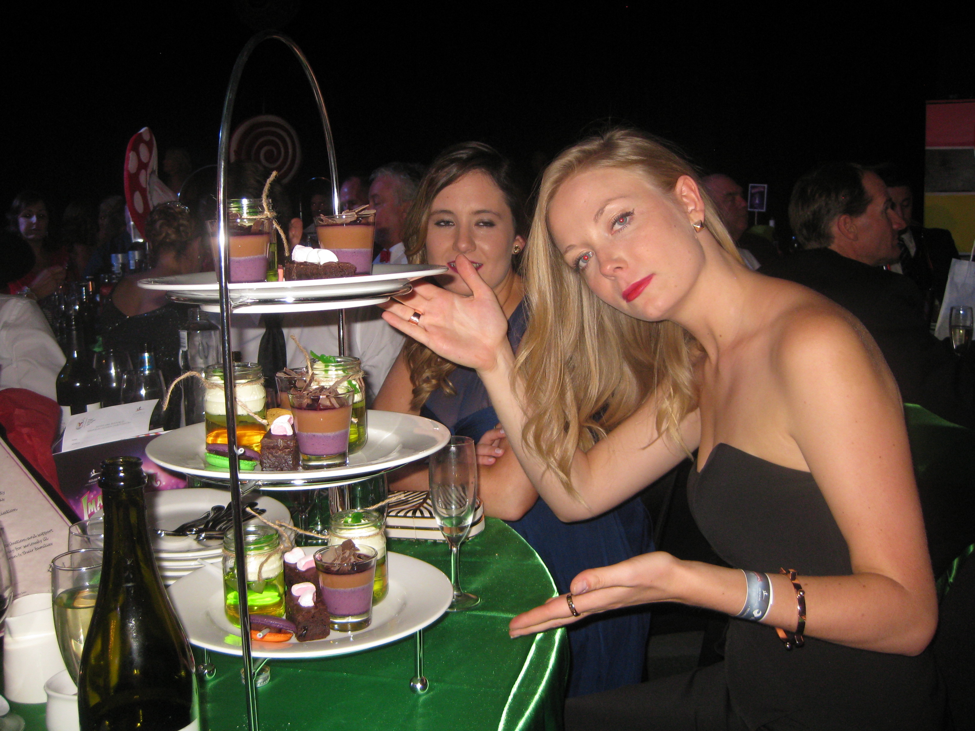 The food was amazing. We had salmon tart for entree, I had a rack of lamb for main (I may have gnawed on the bones in a manner that would have upset etiquette experts everywhere…) and then we were presented with a tower of desserts. Which Claire is presenting with her best Matt Preston ‘I’m so unimpressed face’: