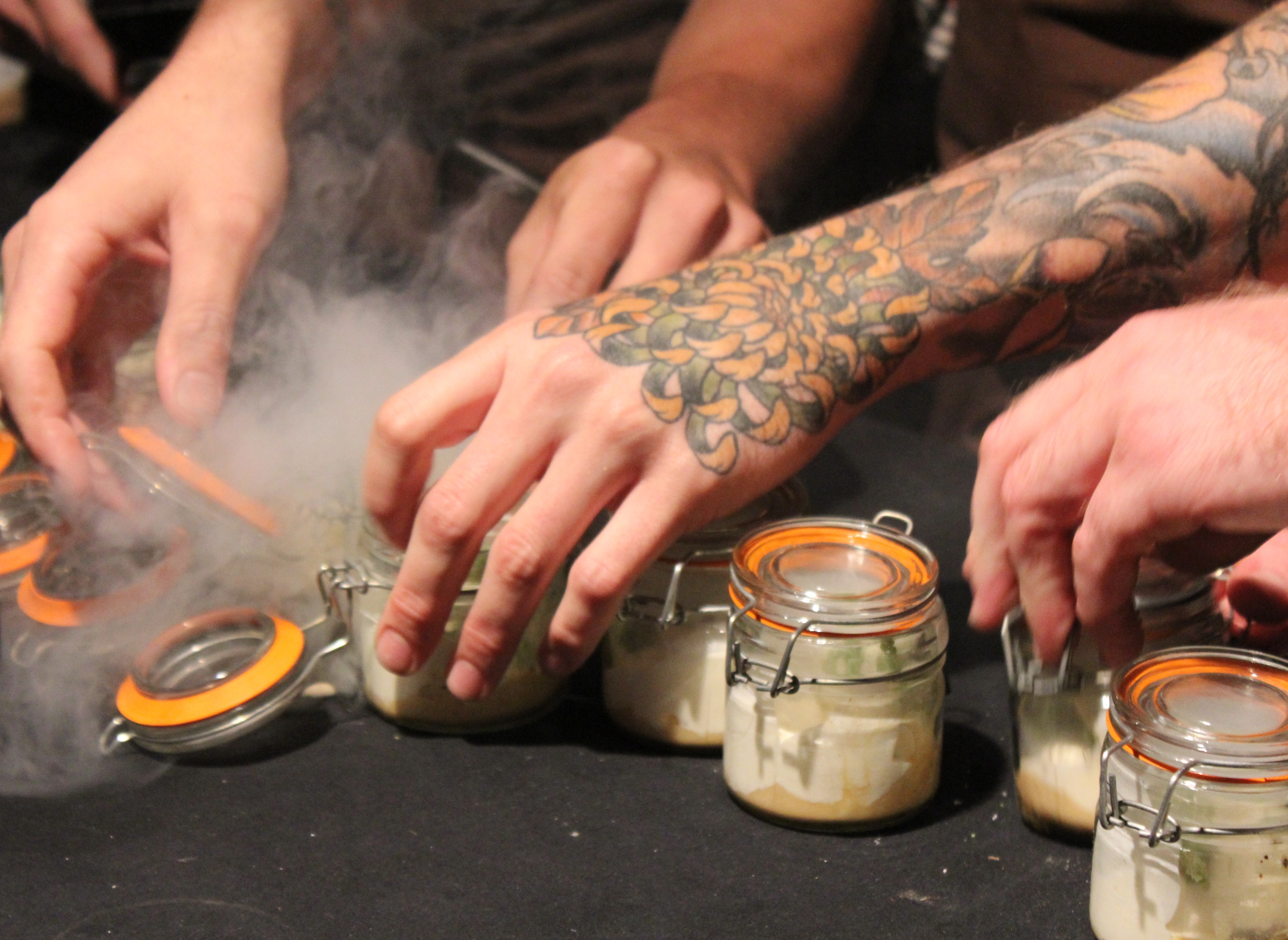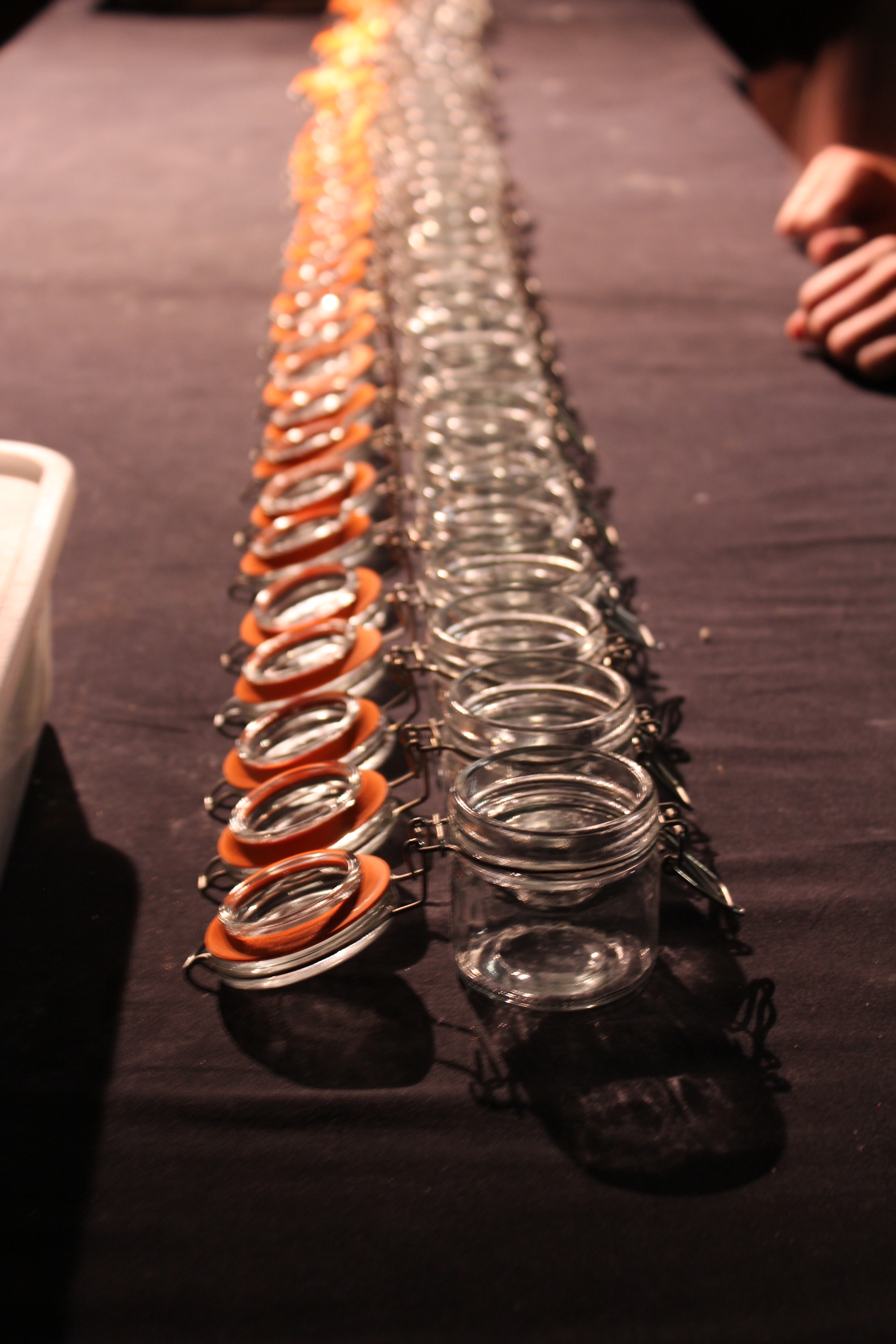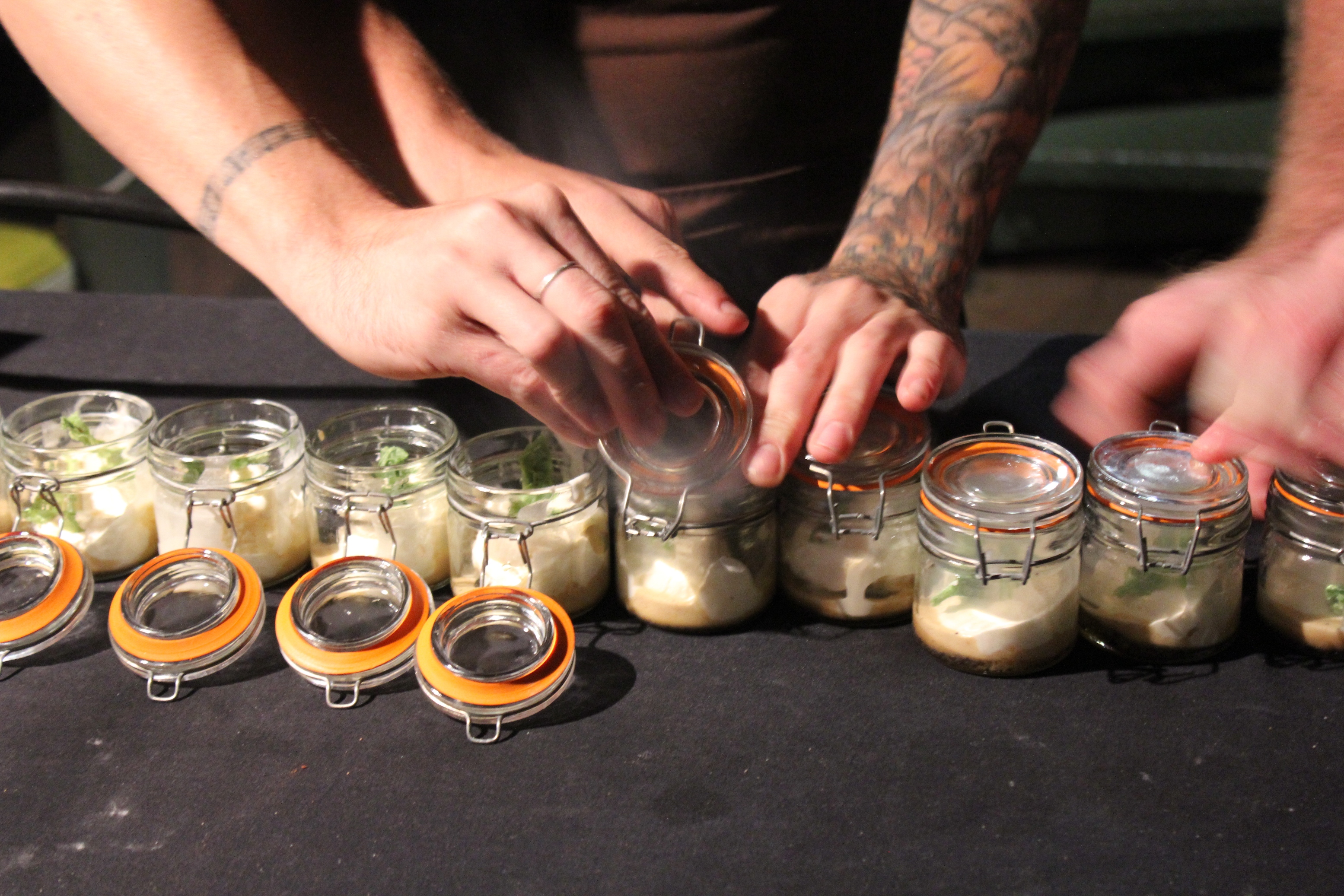 All the ingredientsย were in the jars and then they injected the smoke and snapped the lids shut to keep it in there.