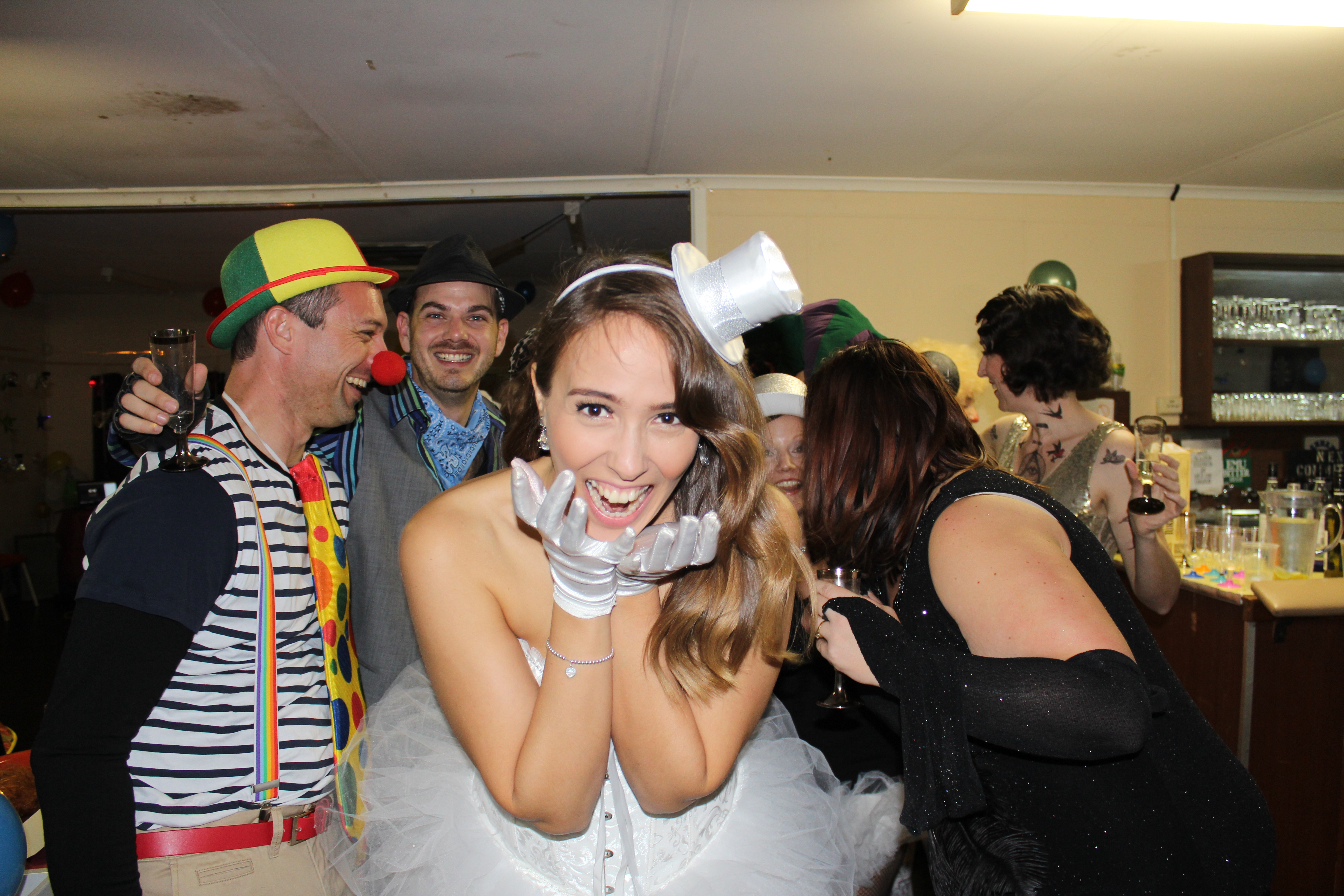 Everyone really made an effort with costumes and looked outstanding. Bec’s boyfriend Scott must really love her to don a full length pink onesie and a rainbow wig: