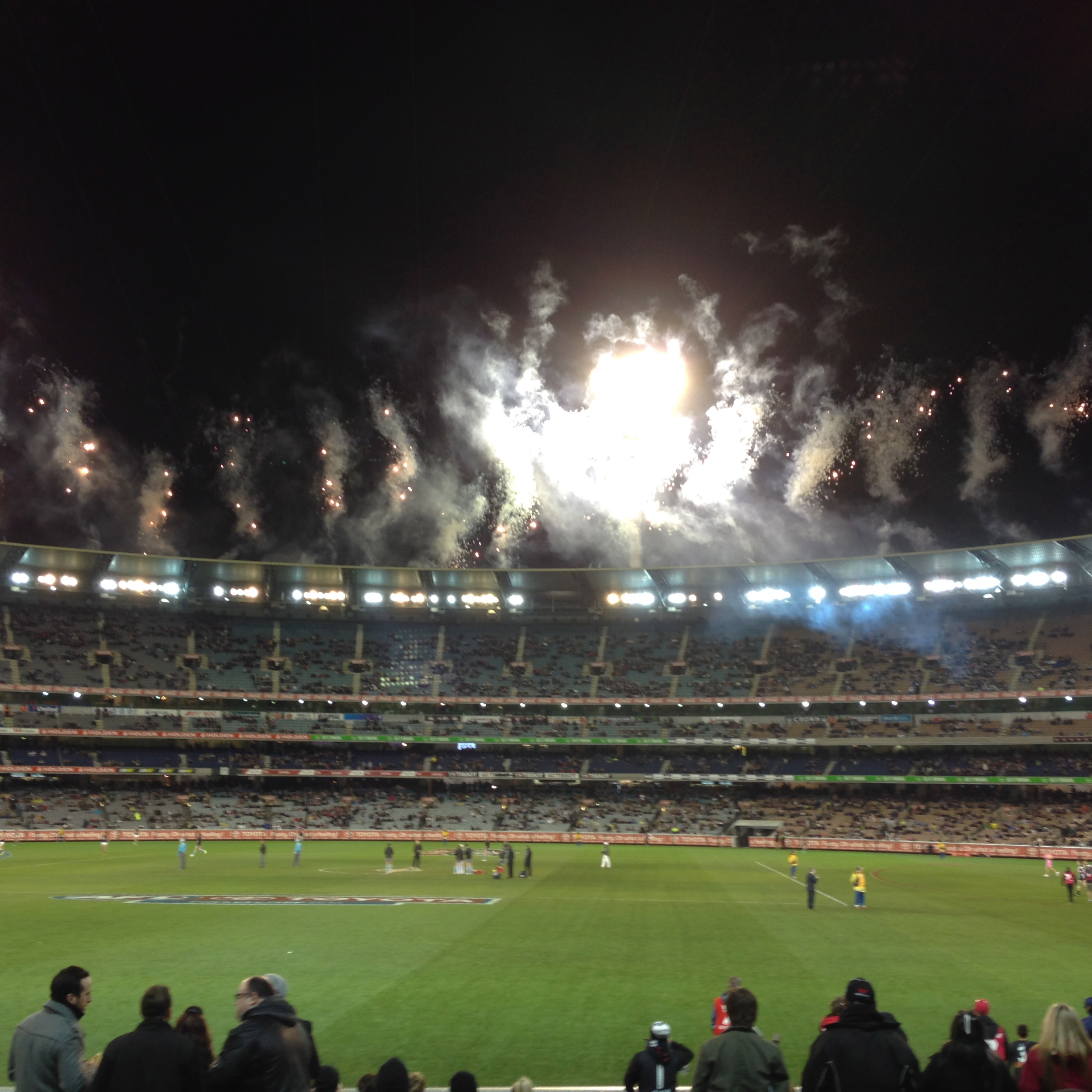 Collingwood, who seem to be on some kind of mission to turn average mid-season AFL games into SuperBowl-esque extravaganzas, started with some pre-match fireworks and hip hop dancers gyrating away in hideous Beetlejuice/Robin Thicke style leggings. An assault to the senses, to say the least.