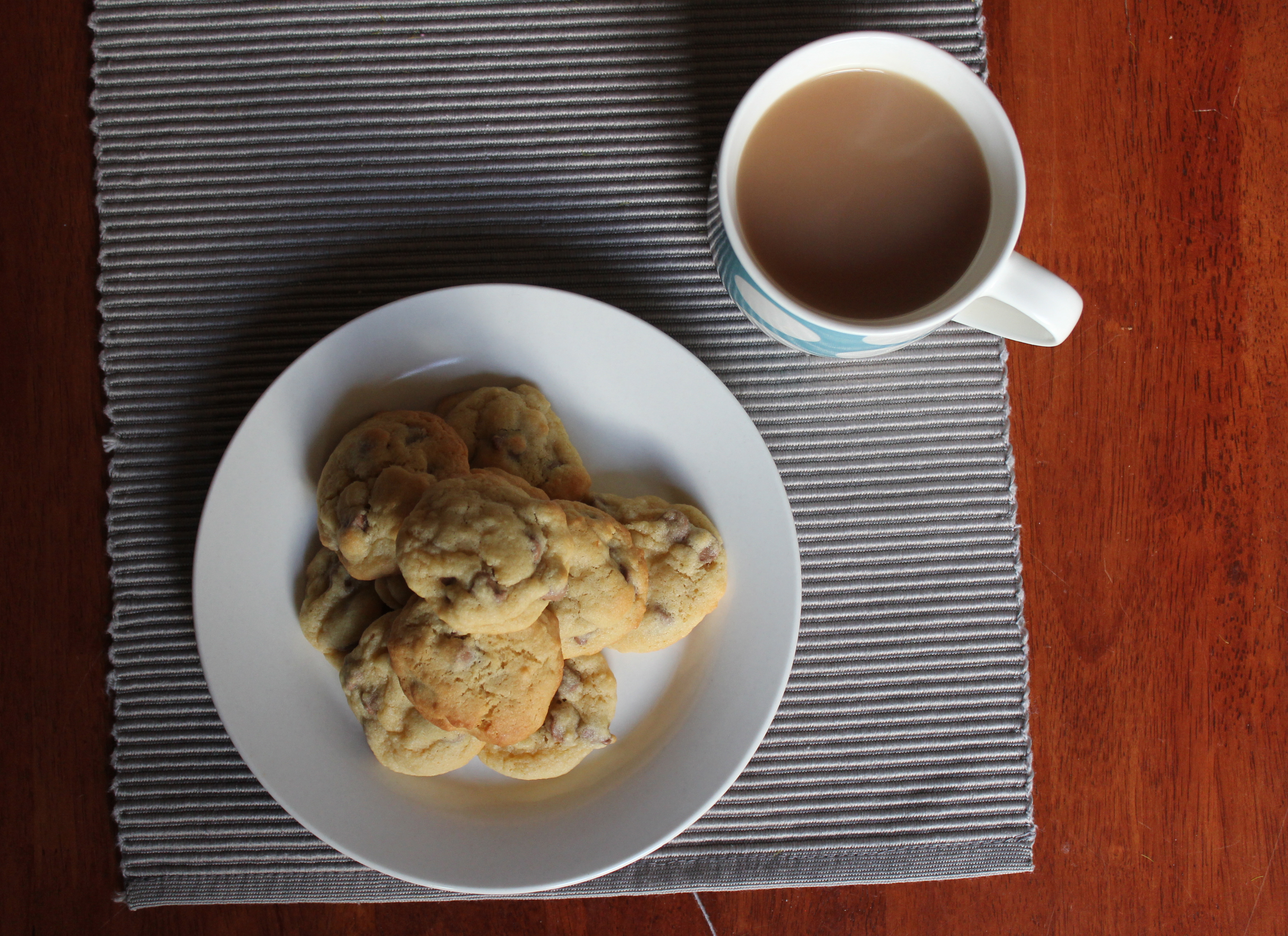 I was recommended the Meet Me at Mike’s Best Ever Choc Chip Cookies recipe ages ago by someone, so I thought I’d give it a whirl. I had all the ingredients except the choc chips, so I went to the supermarket and only realised I’d left my wallet at work when I was at the checkout. Sigh. I almost gave up there and then. But I didn’t. Obviously.