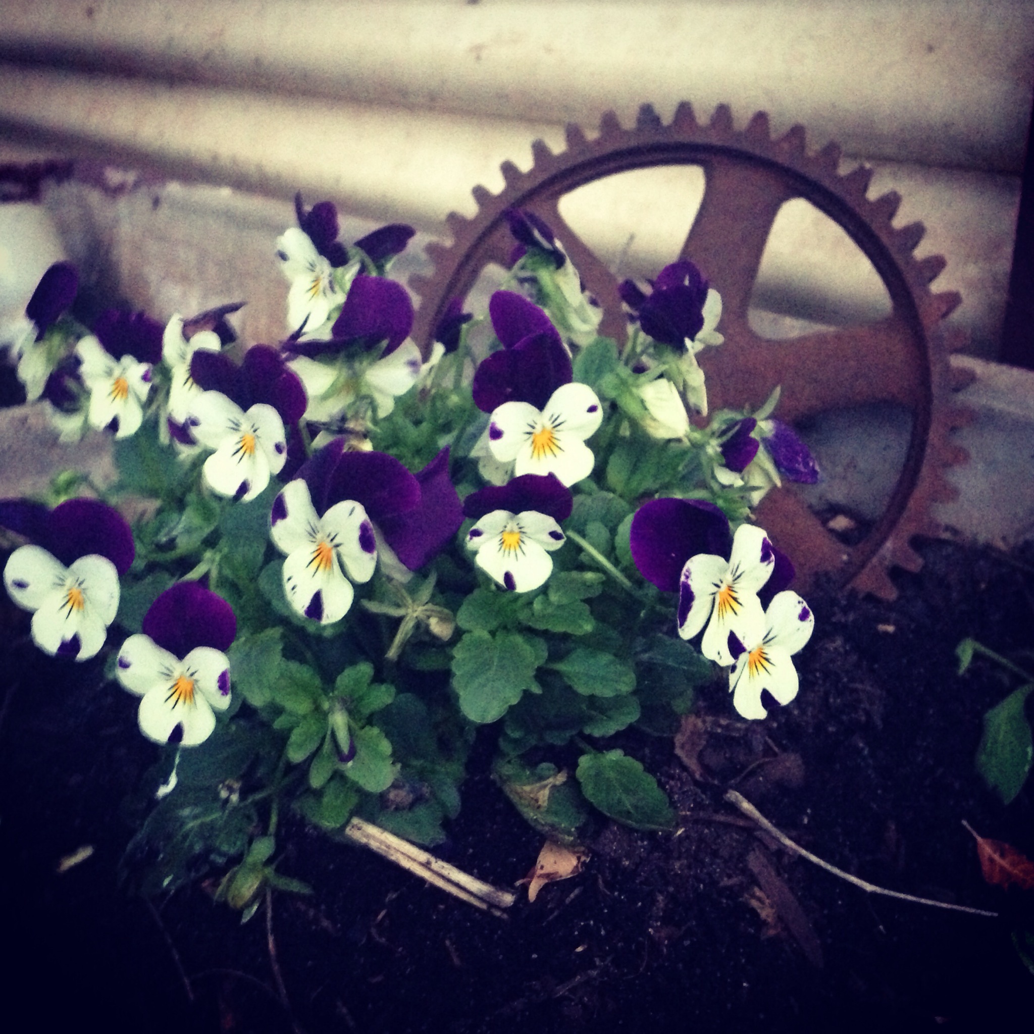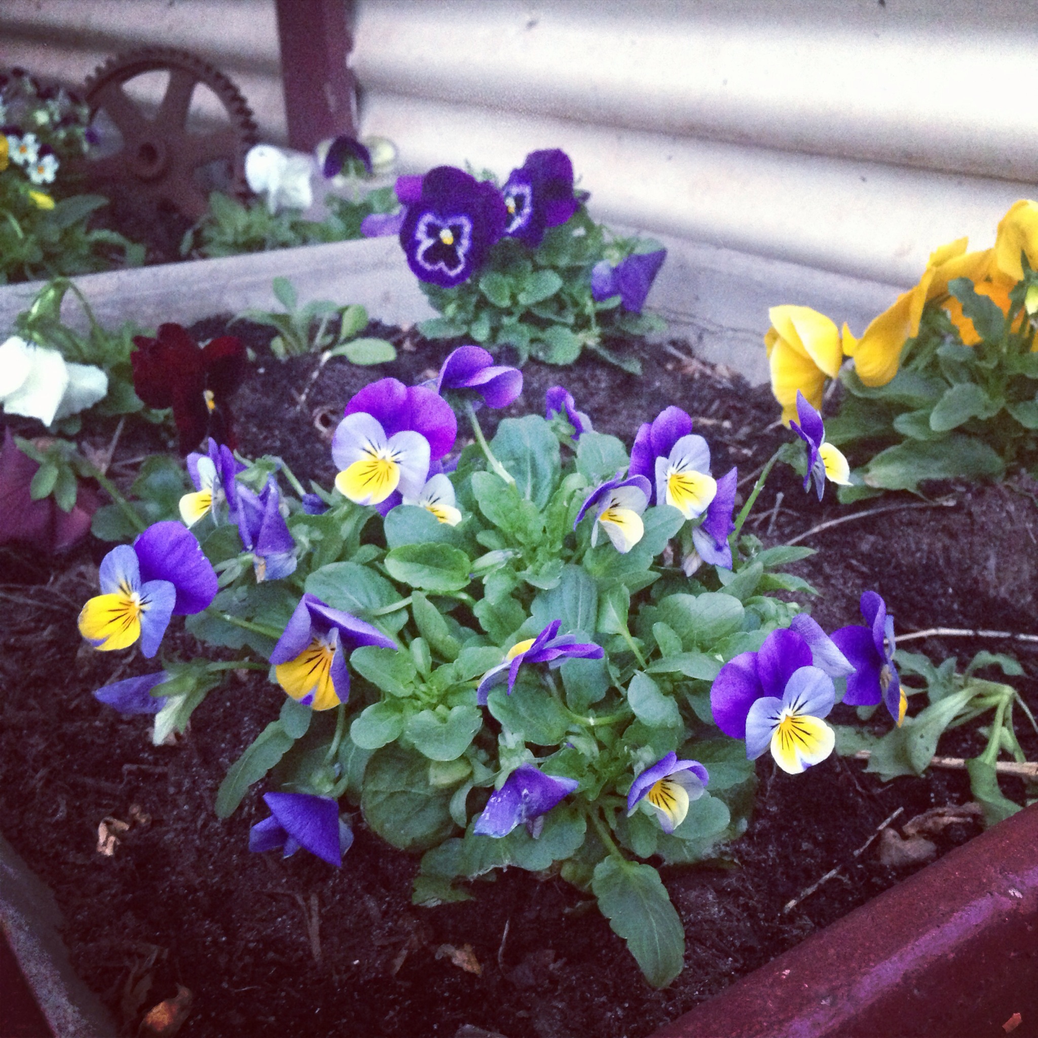 She planted pansies in the random horse trough thingy. Our backyard is home to a lot of strange items…