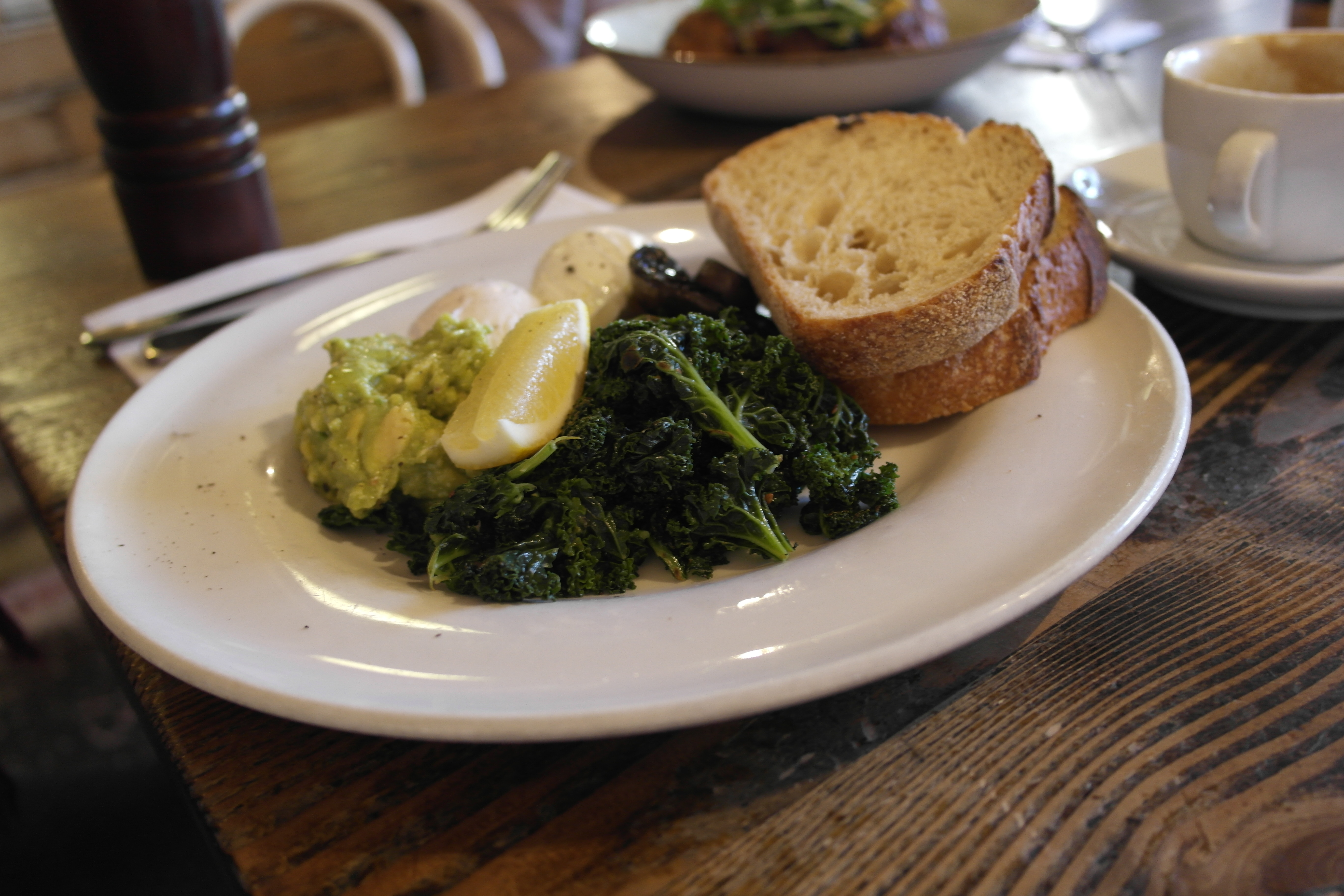 My sister had poached eggs with avocado, toast and kale. She is far more on trend than I.