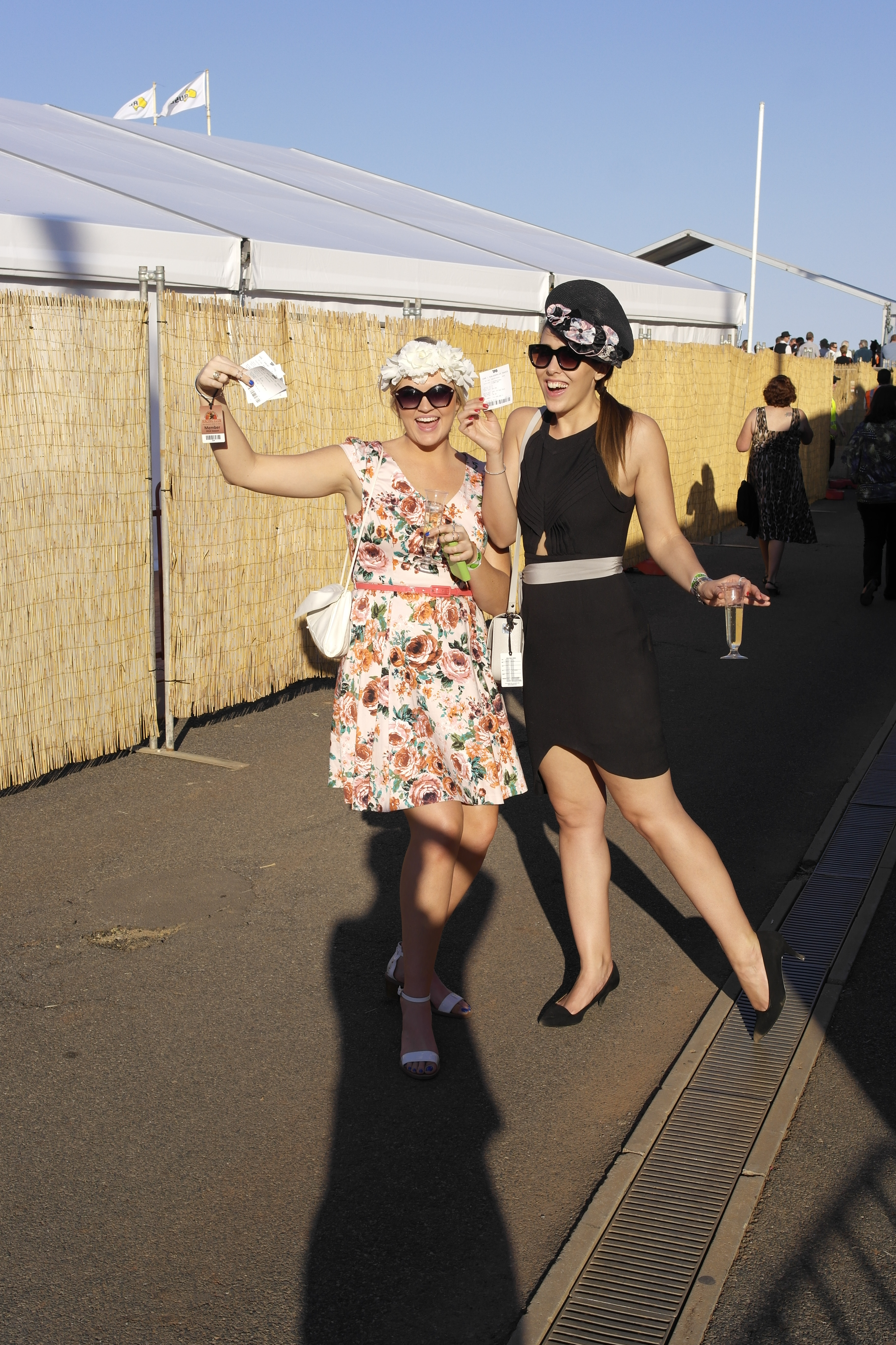 After a last minute costume change I wore the dress I wore to Esperance Cup, and threw on a fascinator my Mum made for me that I had only worn previously at a wedding overseas. Bec, Bec’s boyfriend Scott and I headed track side and wasted no time getting a drink and placing a bet.
