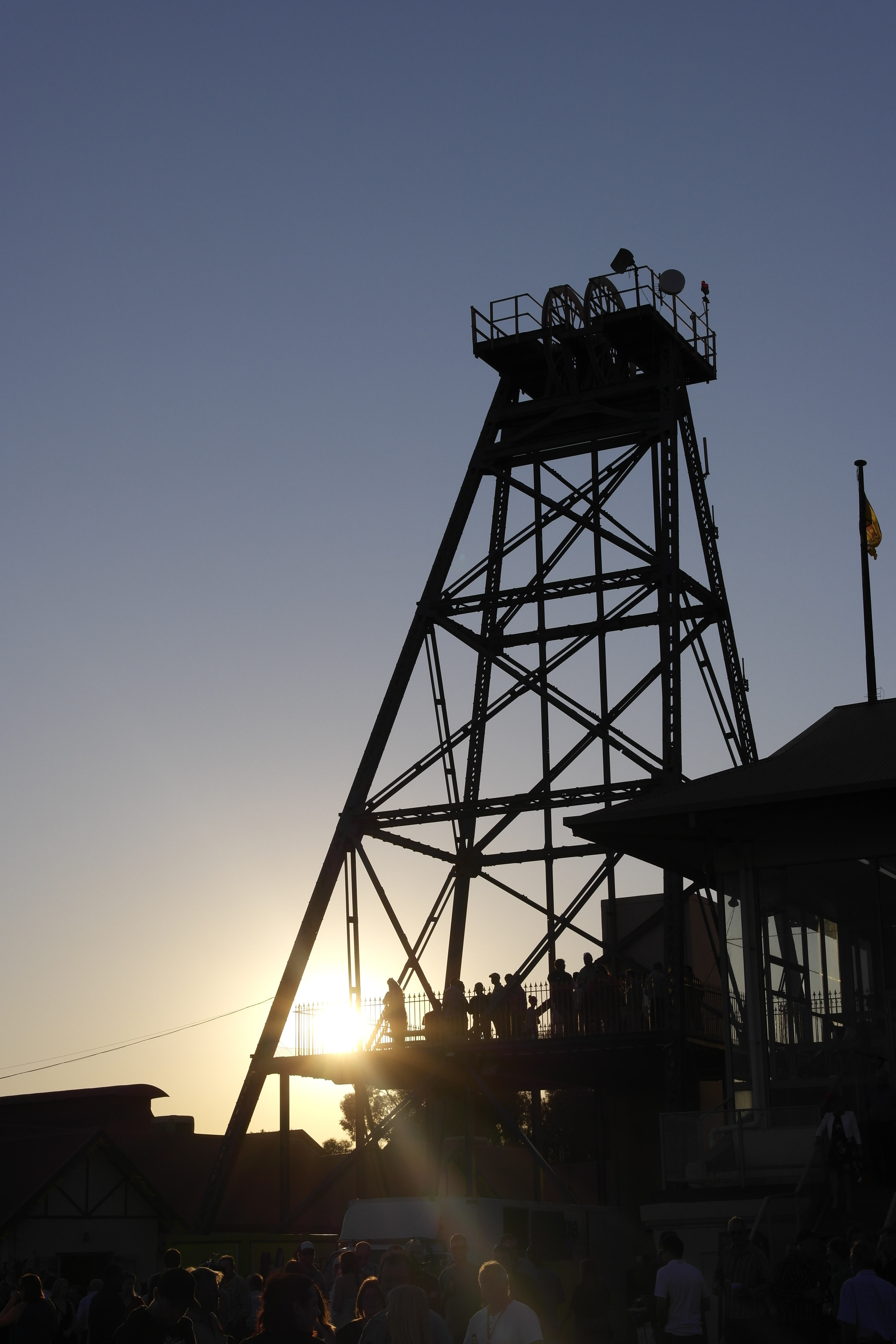After losing a whopping $3 on a mystery bet we went up on the head frame to meet some friends. Yes, a mining head frame, but instead of hoisting ore and equipment from underground, it hoists Kalgoorlie-Boulder Race Club members onto a viewing platform.