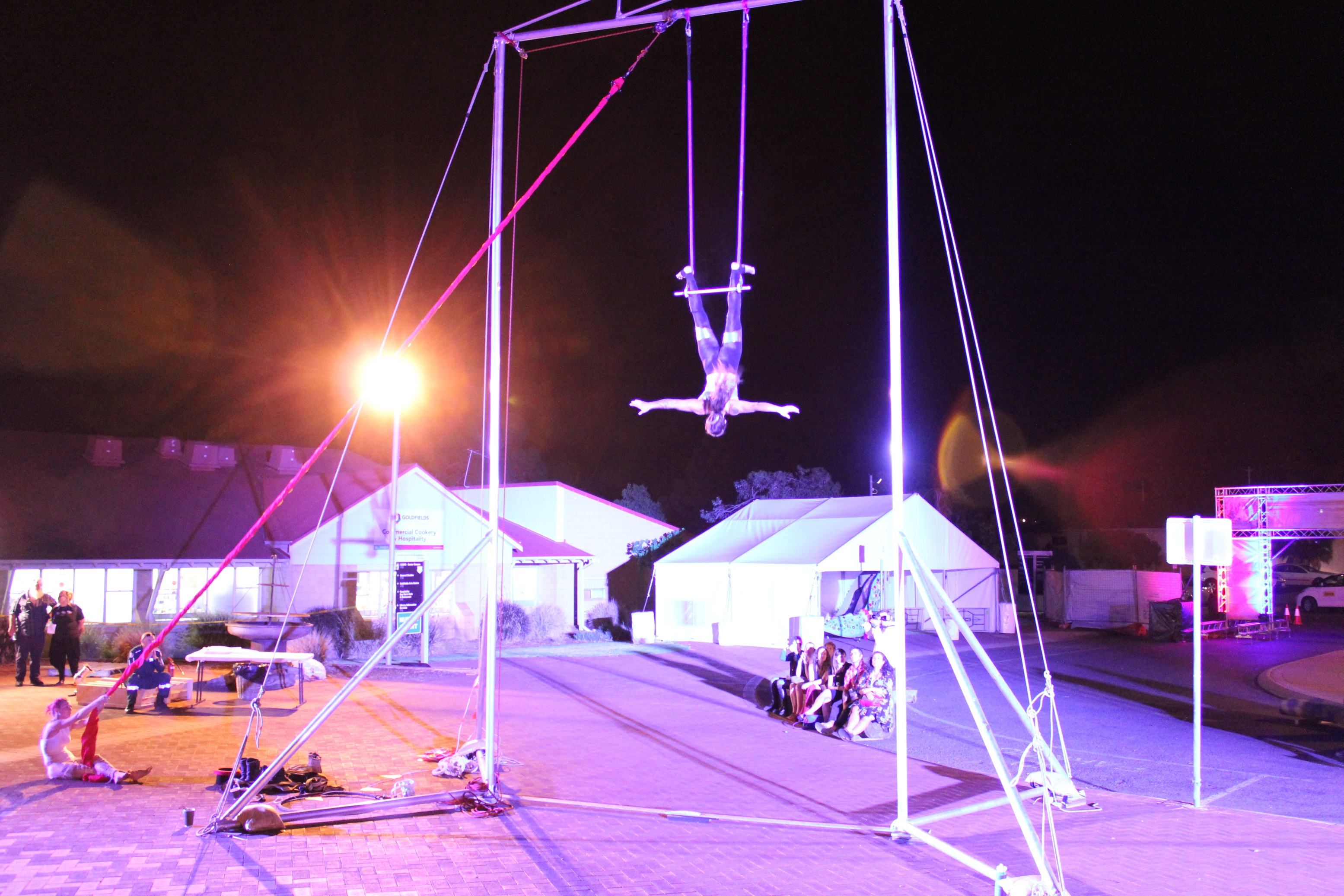Then the Gascoyne Circus did some aerial silks and trapeze performances. Outside. Hoisted above concrete.