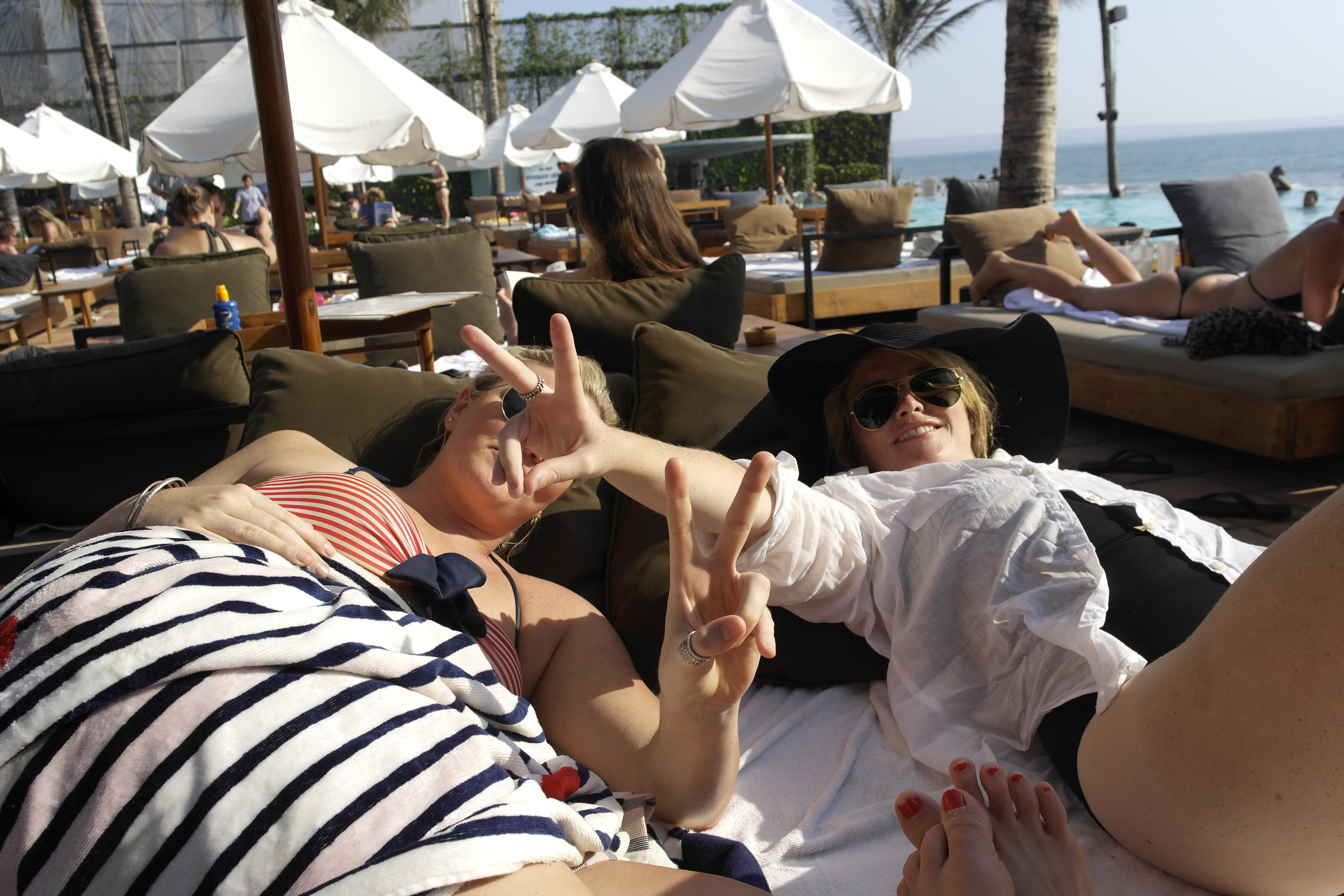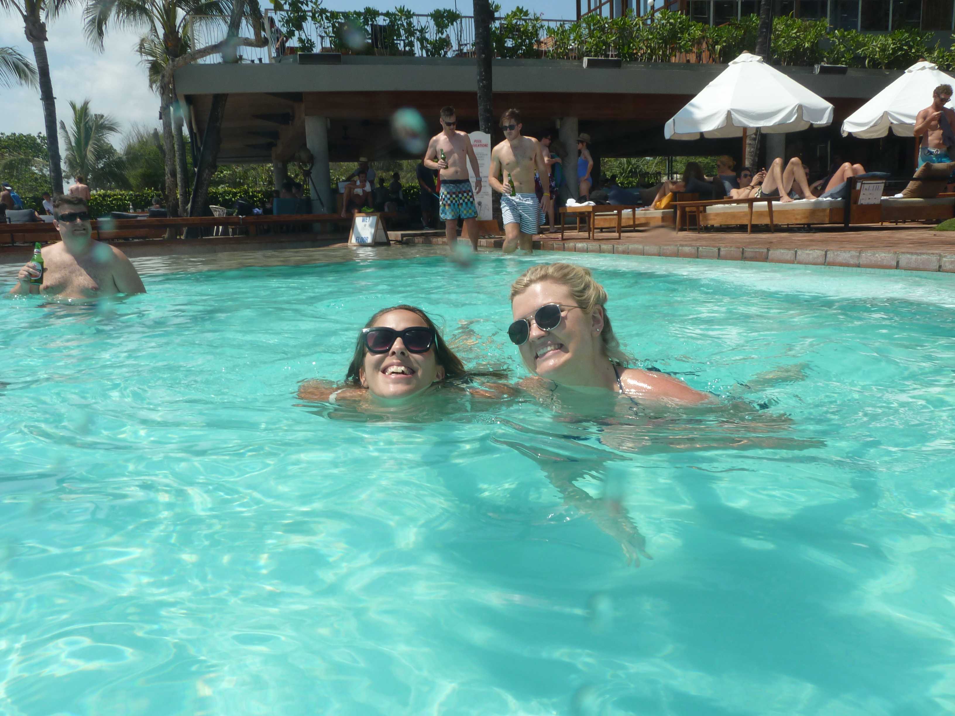 Shortly before or after the above photo was taken, a couple of vile, loud mouthed idiots covered in tatts (including the ‘my brothers’ keeper’ tattoo synonymous with the Bra Boys from Sydney- ‘bra’ standing for Maroubra) reached new heights in obnoxious behaviour by pulling their genitals out onto the swim-up bar for a photo. One of them got naked again as they were getting kicked out by security… Such class.