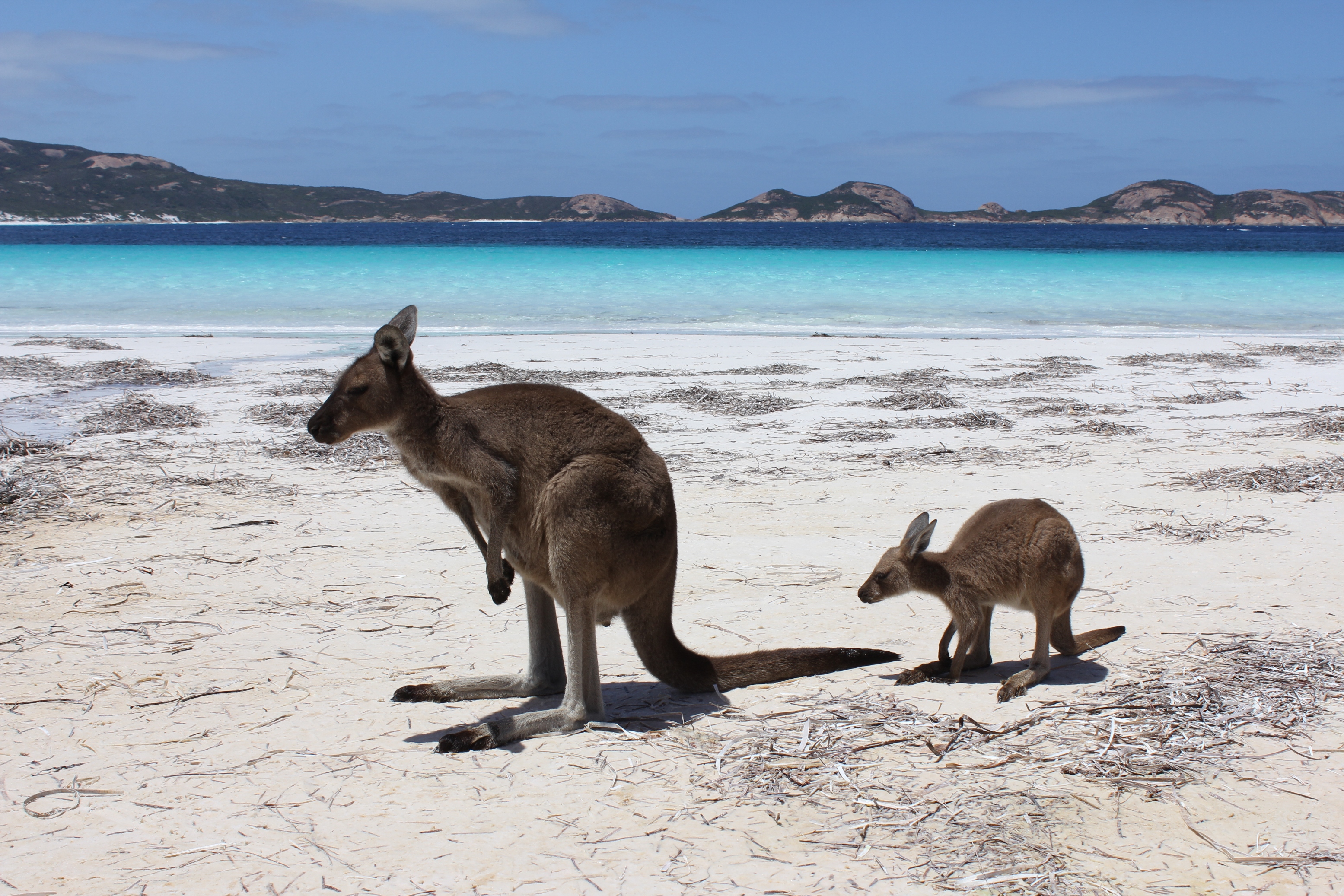 I realise I’m probably about to shatter the perception that Australians see kangaroos all the time and even ride them on the commute to school/work, but LOOK! Kangaroos on the beach!!