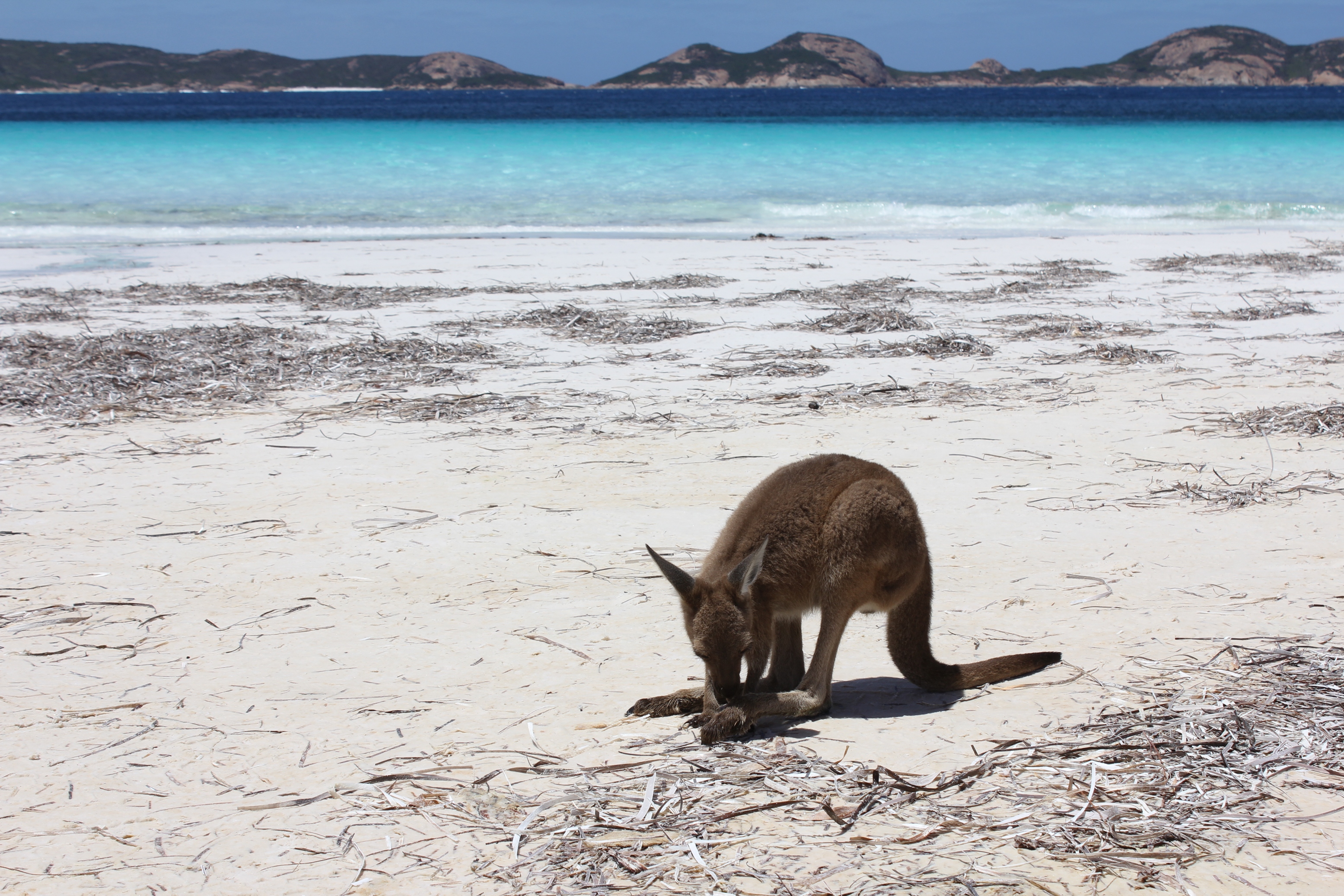 It is really common to see kangaroos hanging out at Lucky Bay in Cape Le Grand National Park, but for some reason they are never there when I’m there. In the car park maybe, but never on the sand. But not today!
