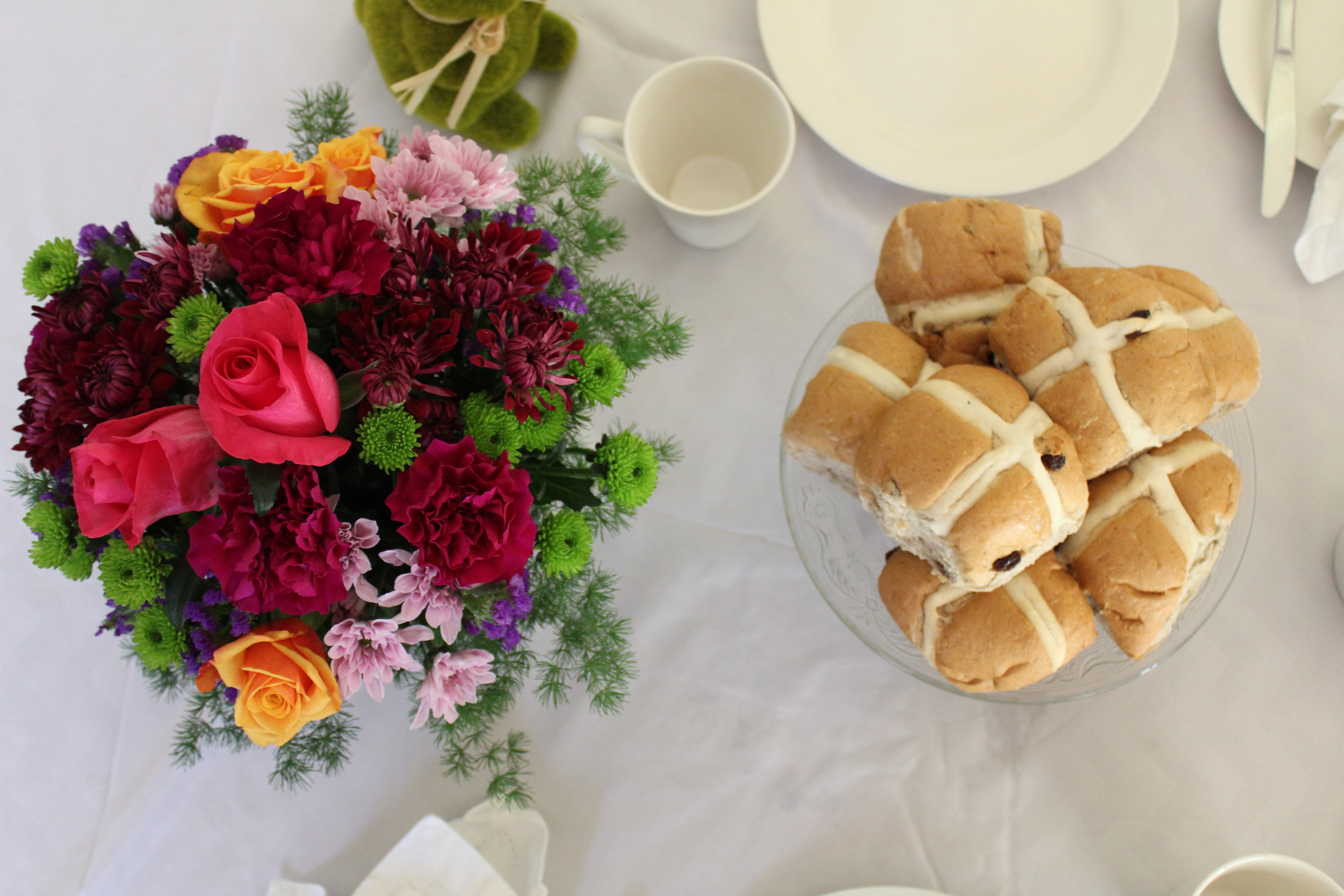 You lucky lady! Beautiful flowers and hot cross buns and lazy TV days – you’ve certainly got the right idea! And happy anniversary, hope there are many more to come 🙂
