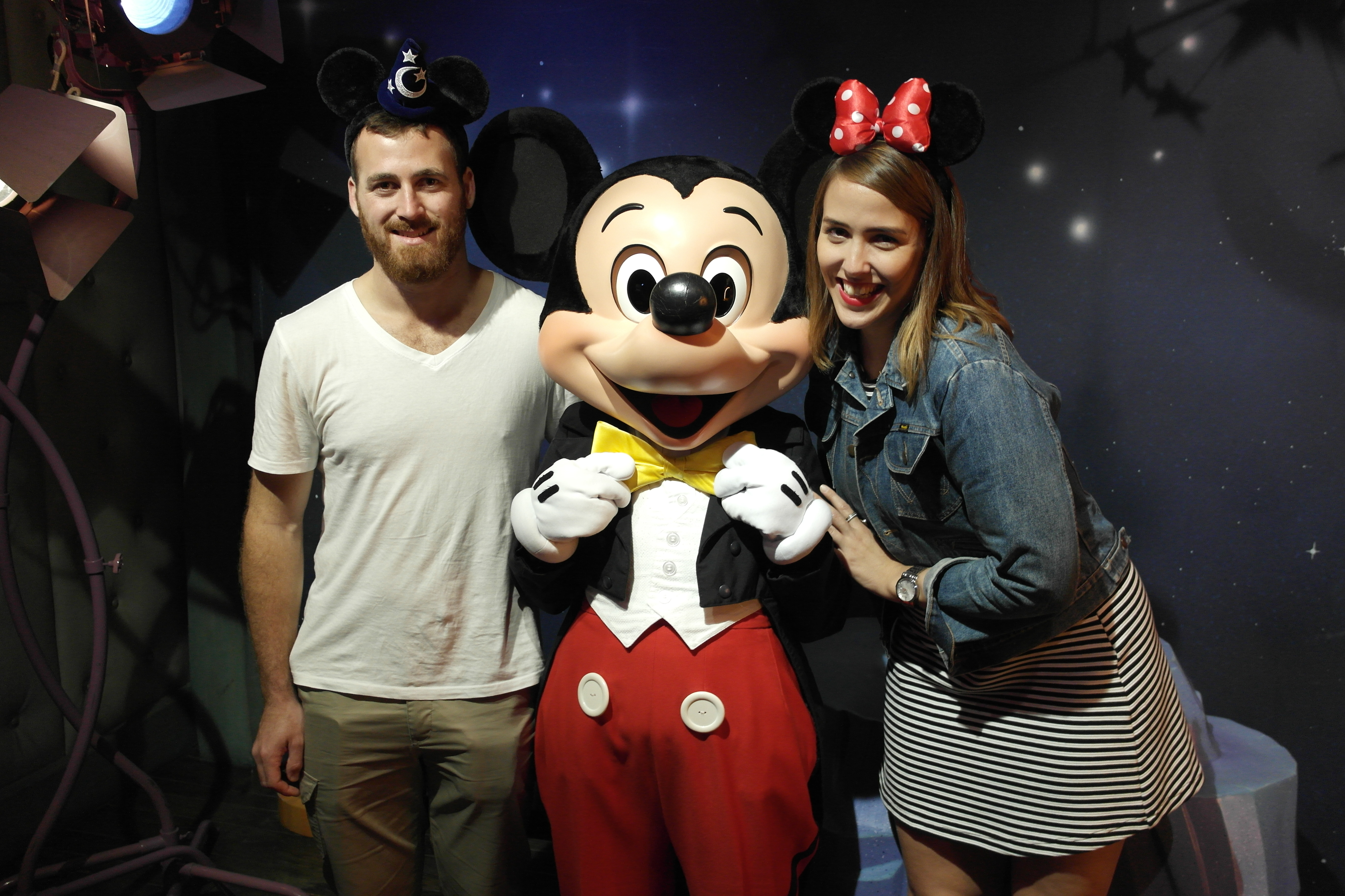 Bought Mickey and Minnie ears and took a really bad selfie of us wearing them: