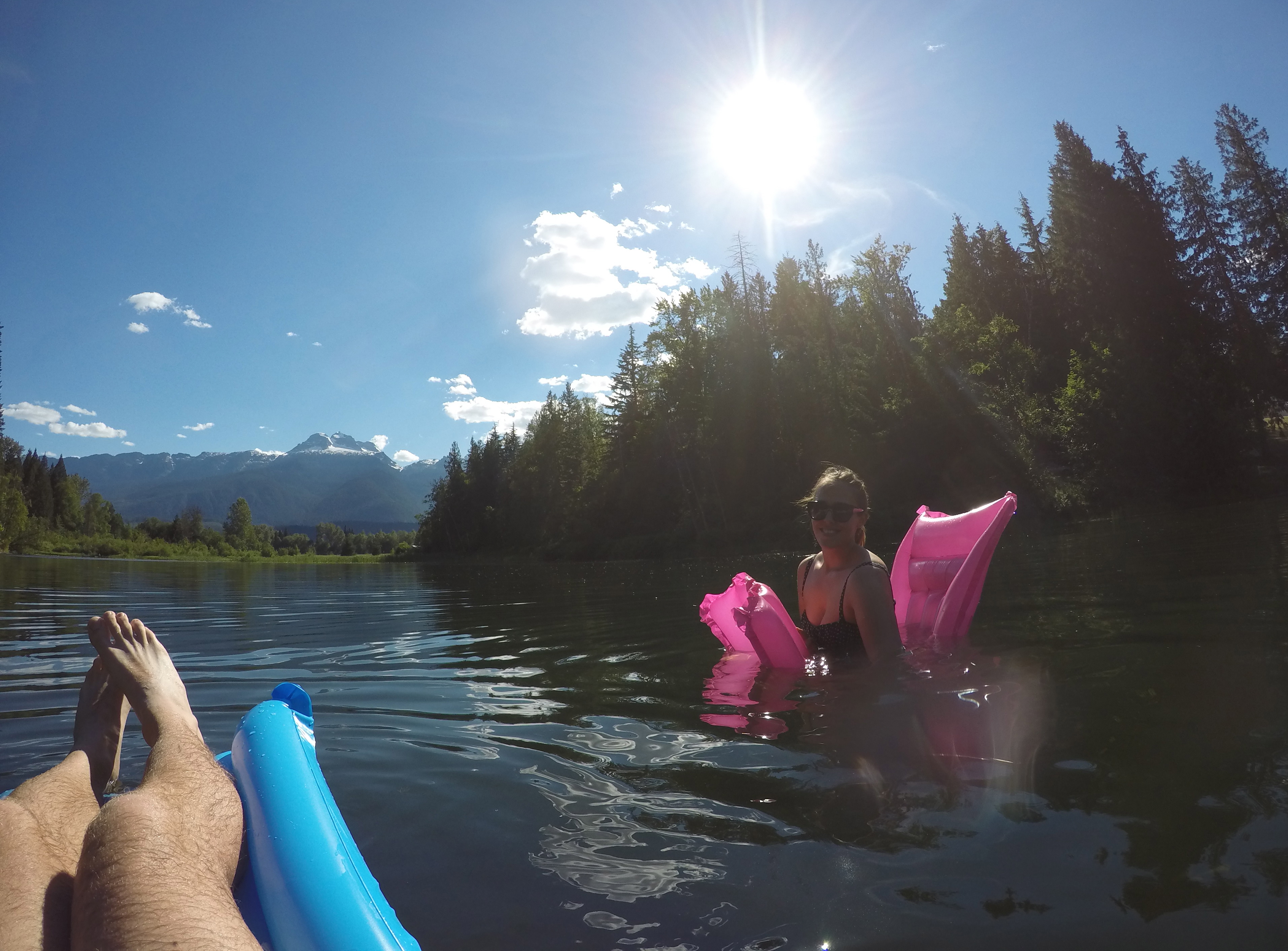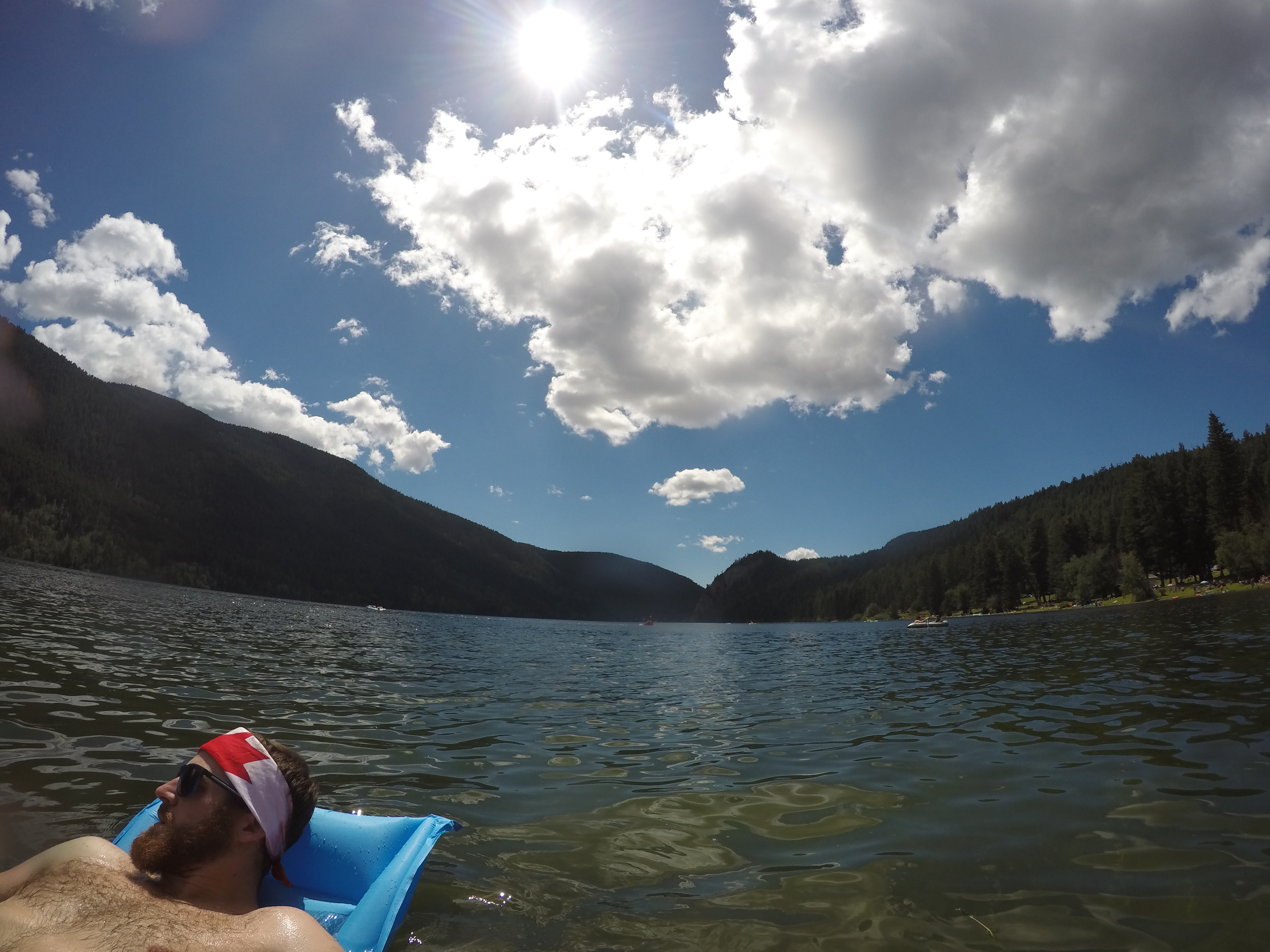 The next day the skies had cleared and it was Canada Day, so we pitched our tent near Paul Lake and went to the shore to soak up some sun.