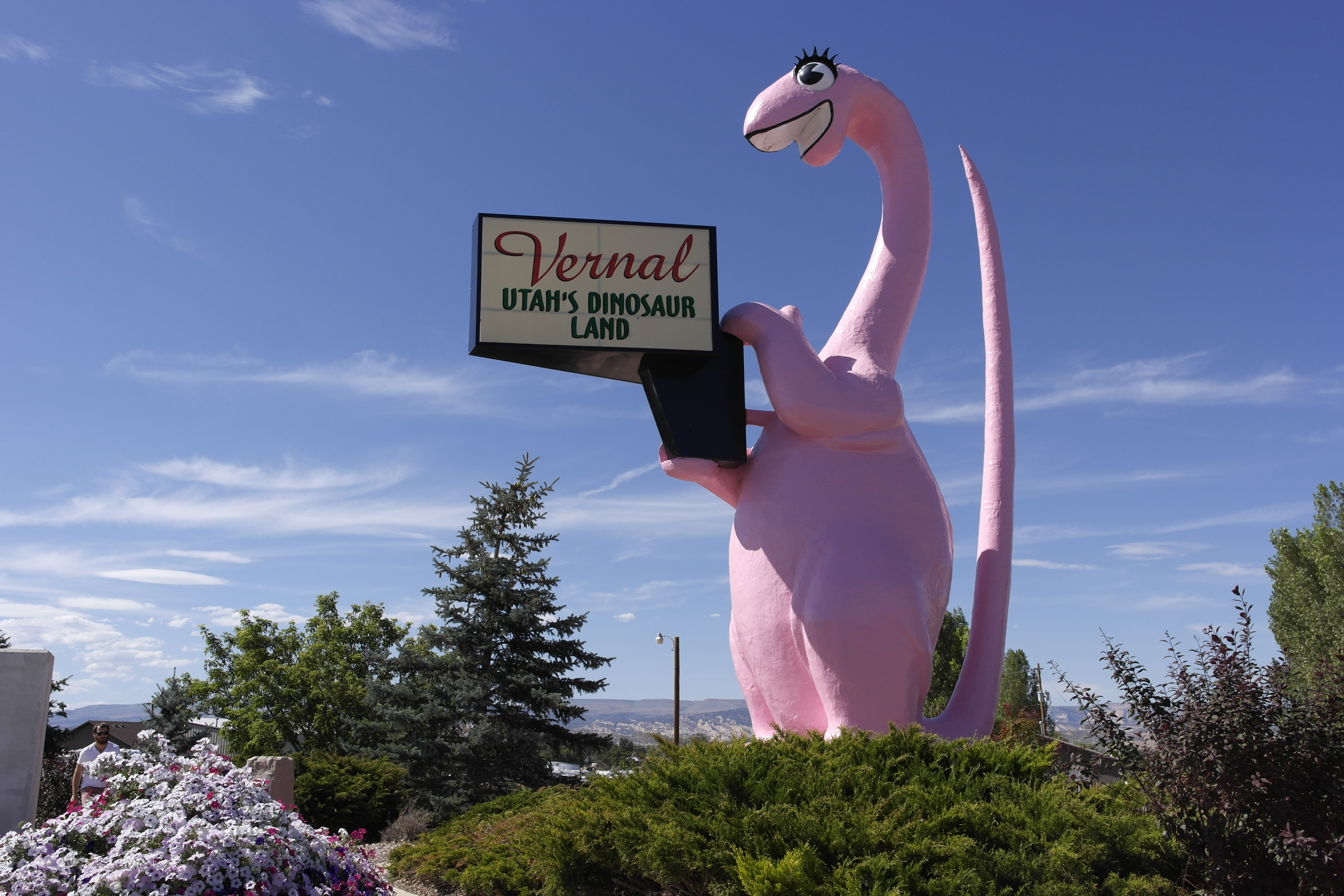 The towns surrounding Dinosaur National Monument in Utah have really capitalised on their prehistoric roots by erecting giant pastel cartoon dinos all over the place. Which is awesome, seeing as the real things aren’t available (and would no doubt be less friendly).