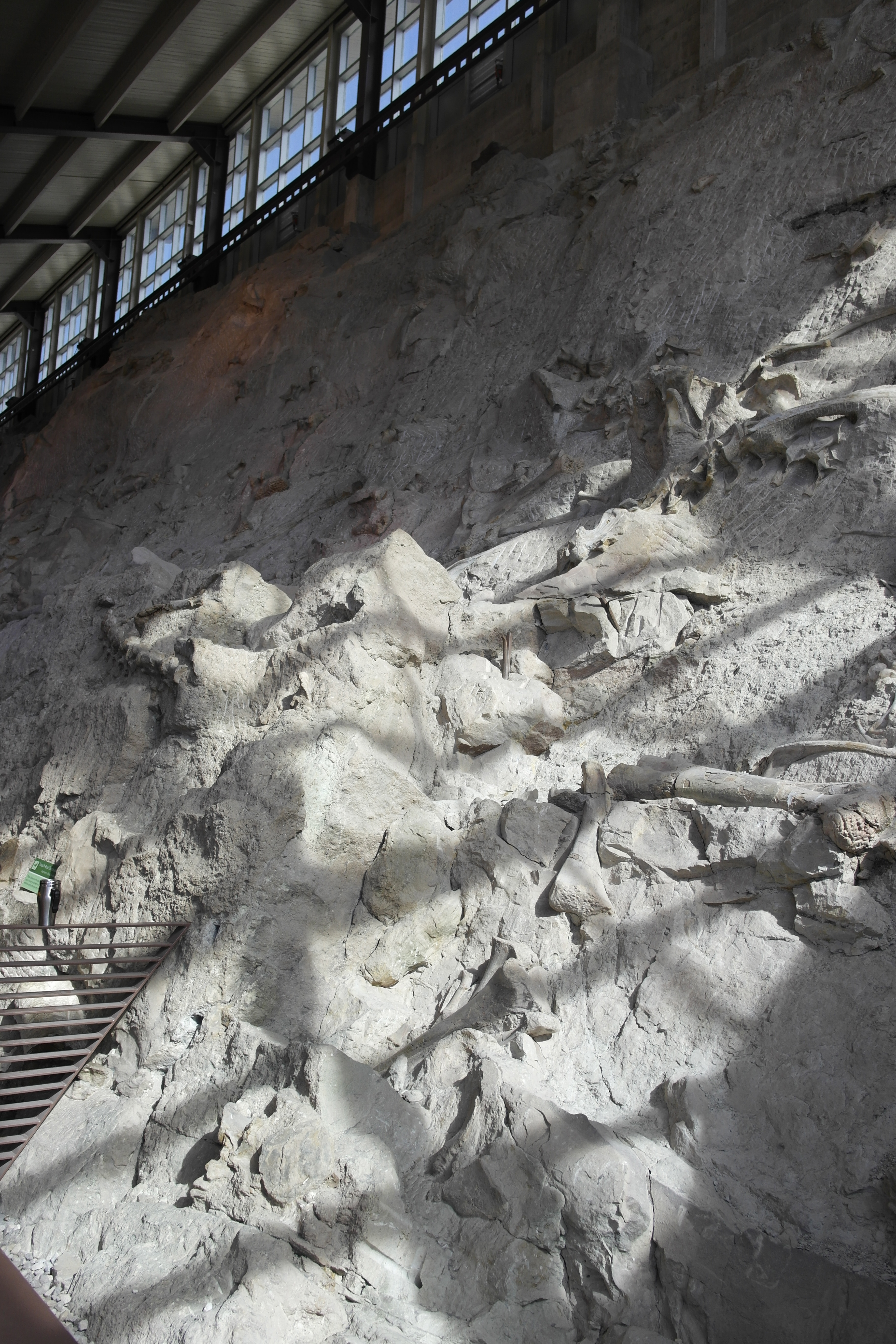 The fossil beds at Dinosaur were discovered in 1909 by palaeontologist Earl Douglass and the famous quarry is a graveyard wall embedded with nearly 1,500 dinosaur bones.