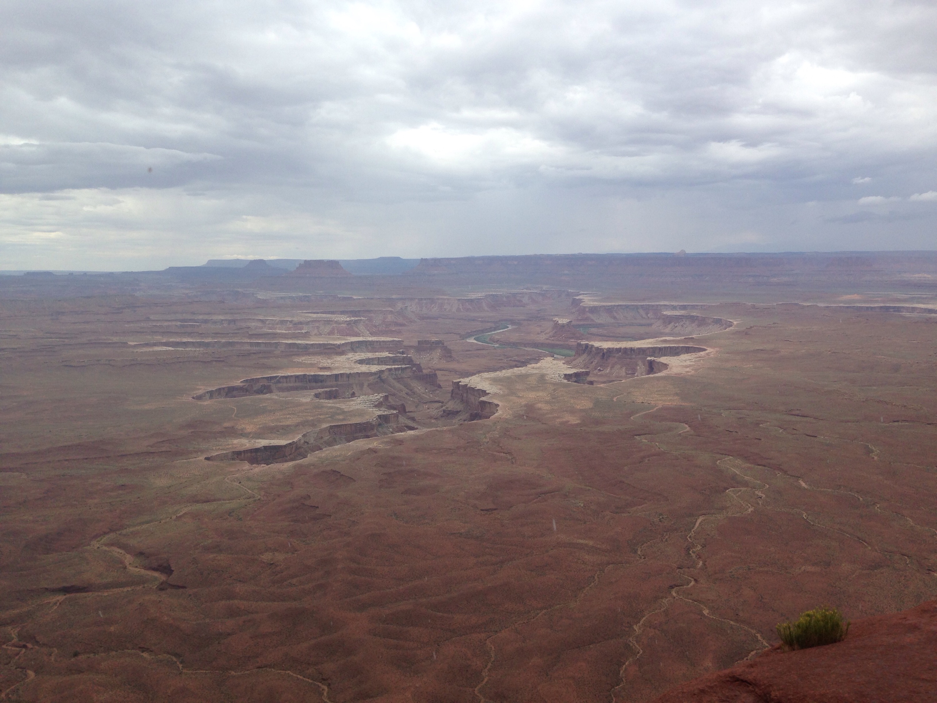 Just as we left Mesa Arch a huge rain storm rolled in. So we jumped in the car (cursing ourselves for having not yet replaced the windscreen wiper blades) and went to one last view point: