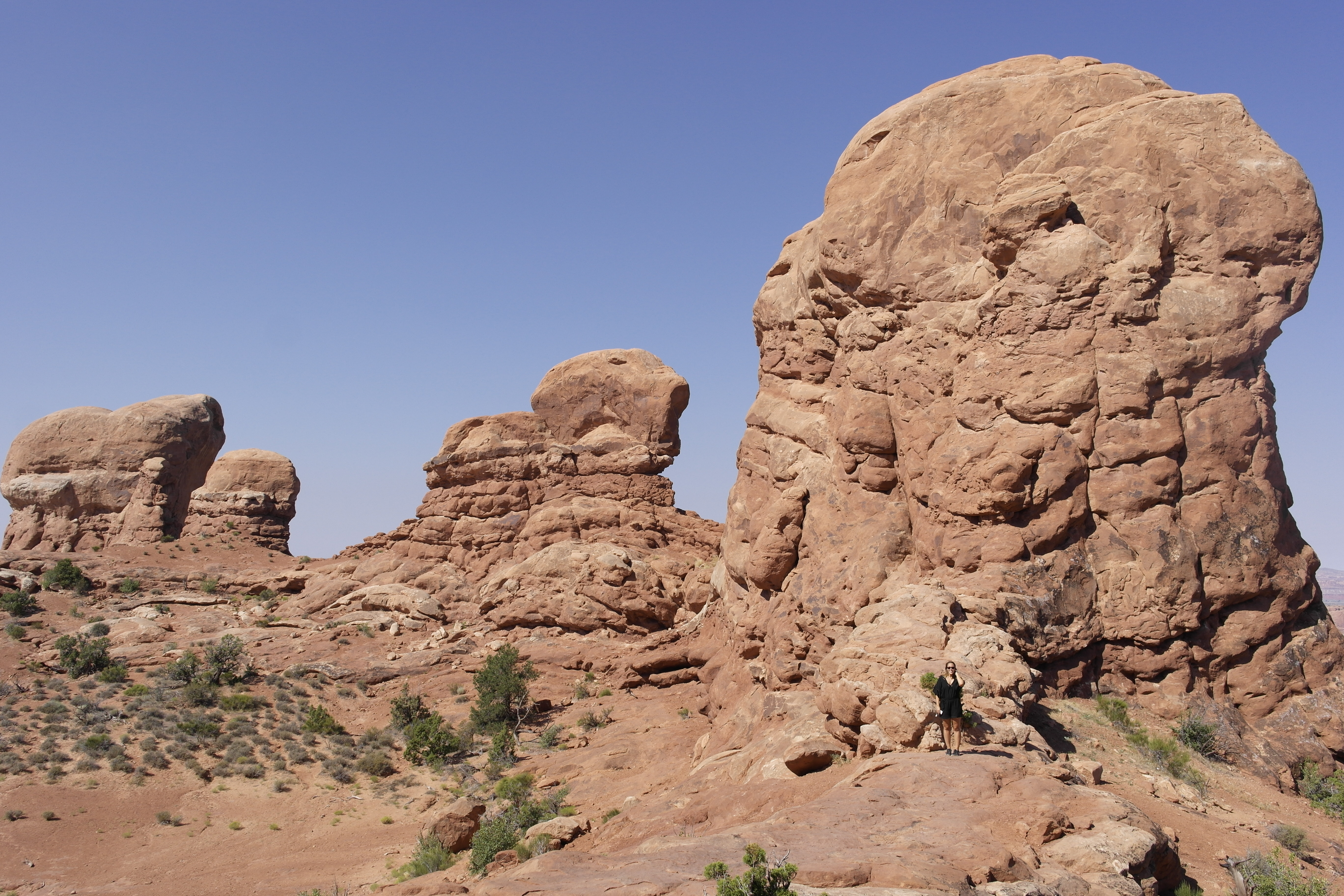 Moab is the closest town to Arches National Park and Canyonlands National Park and after a few wrong turns exiting the freeway we made there and it to our campsite. The next morning we rallied kind of early to hit Arches before the heat.
