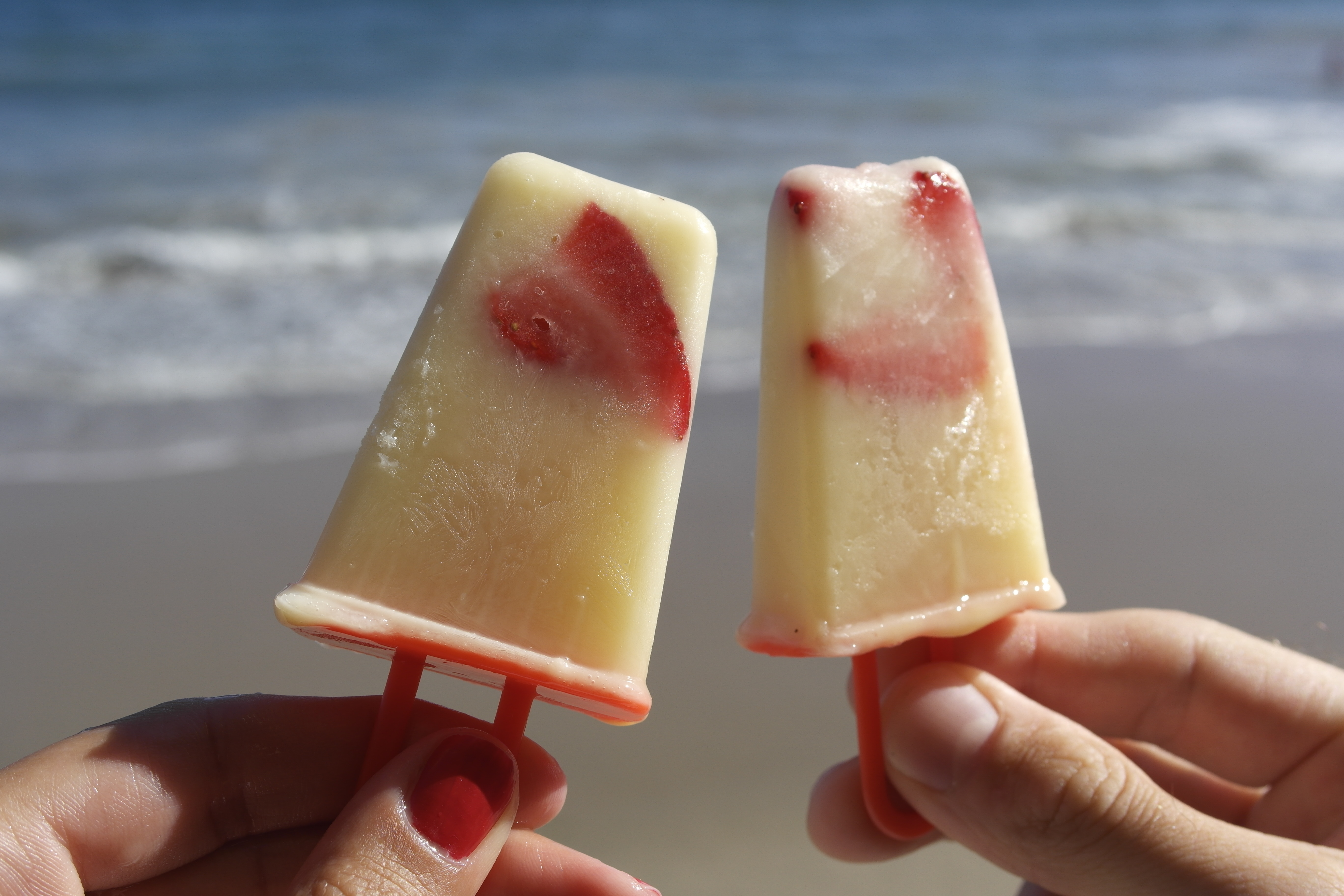 I made icy poles (popsicles?) with the pineapple coconut juice. No rum in these though, just strawberries.