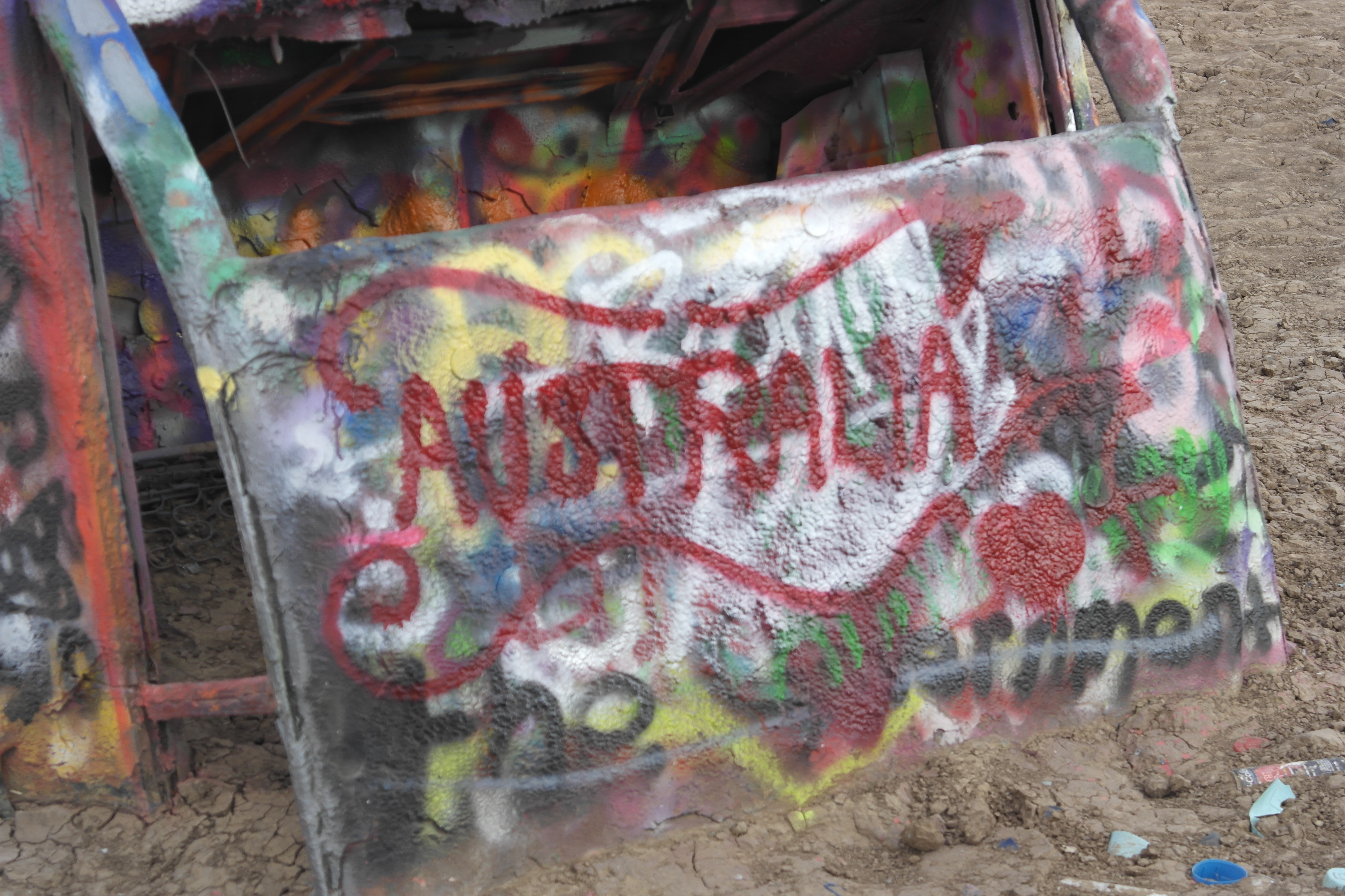 The first thing we saw when we pulled off the highway at a place called Amarillo was Cadillac Ranch: