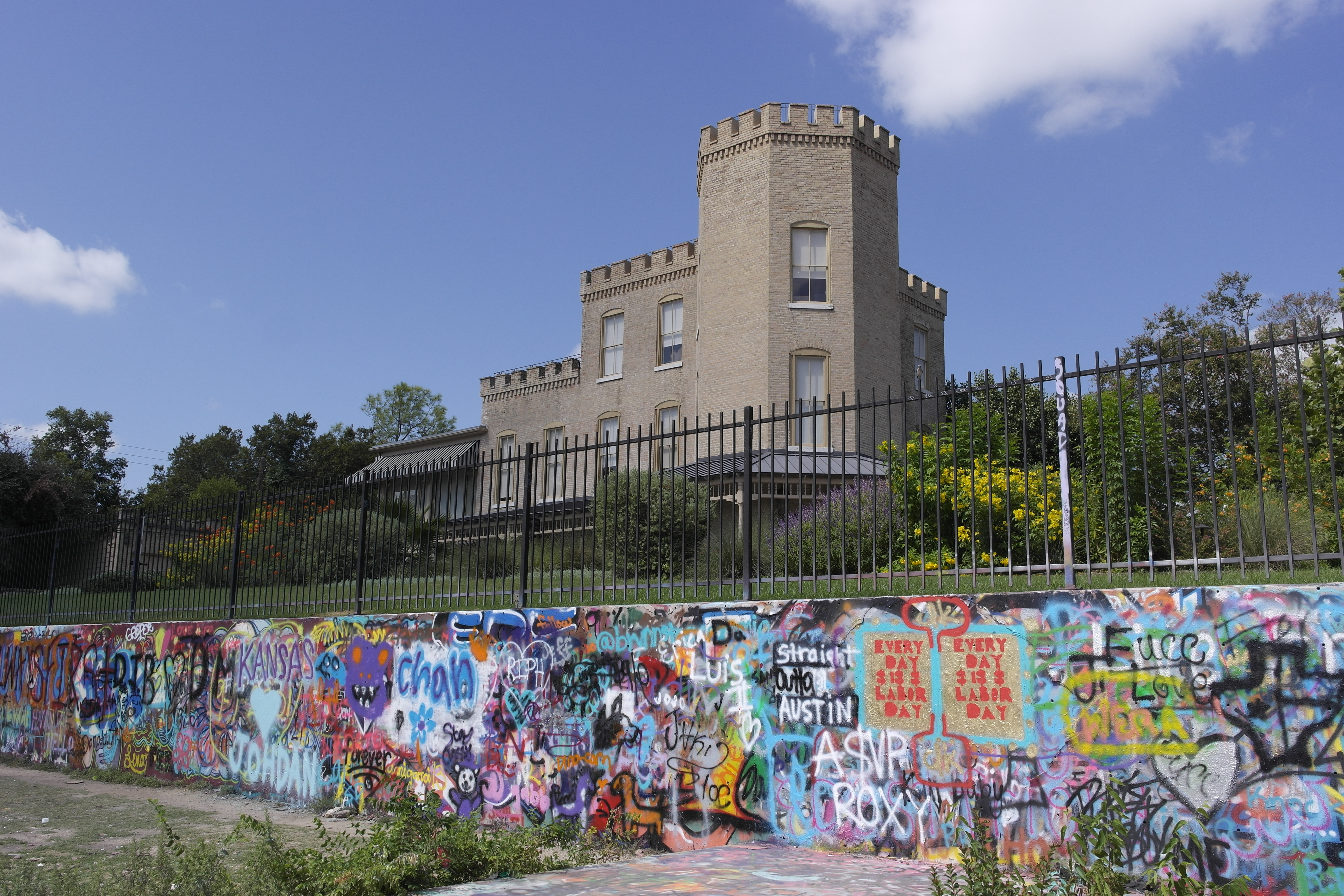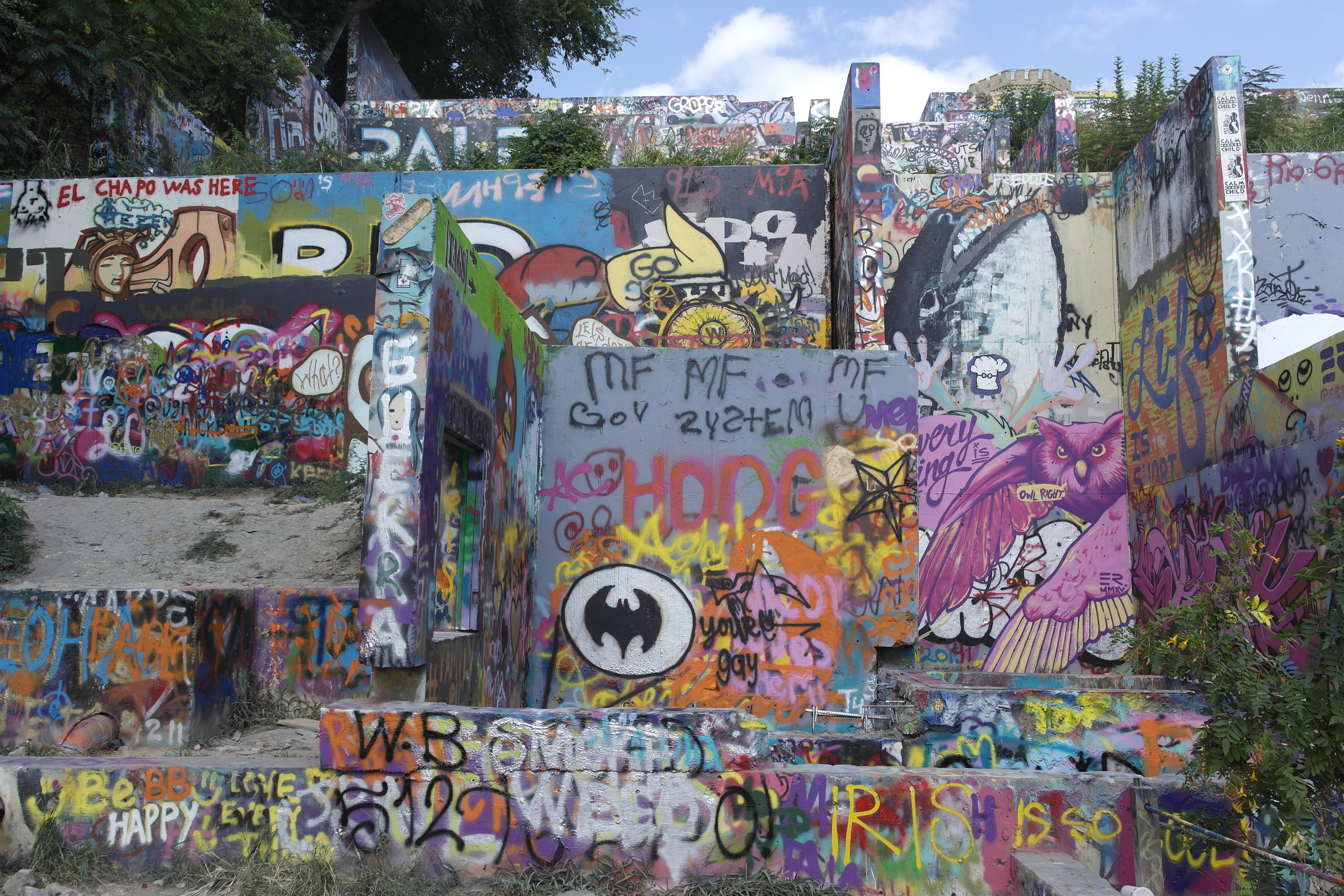 Graffiti Park at Castle Hills (Hope Outdoor Gallery) is a three story art project. I can’t find any information on what used to be there but it looks like the bare bones of an old building, covered in graffiti.
