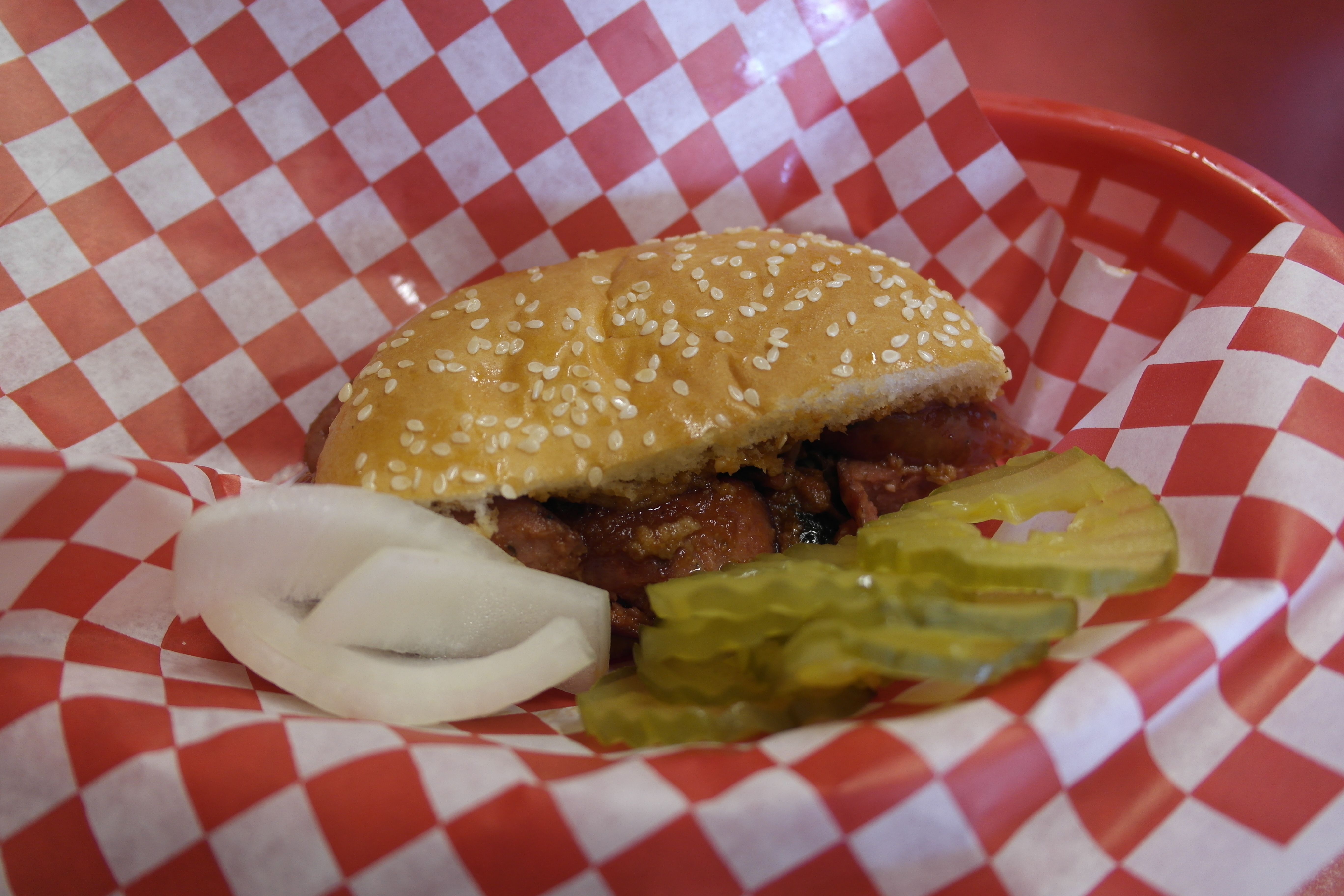 Despite having gorged ourselves the day before we decided to share a mixed (chopped brisket and sausage) sandwich.