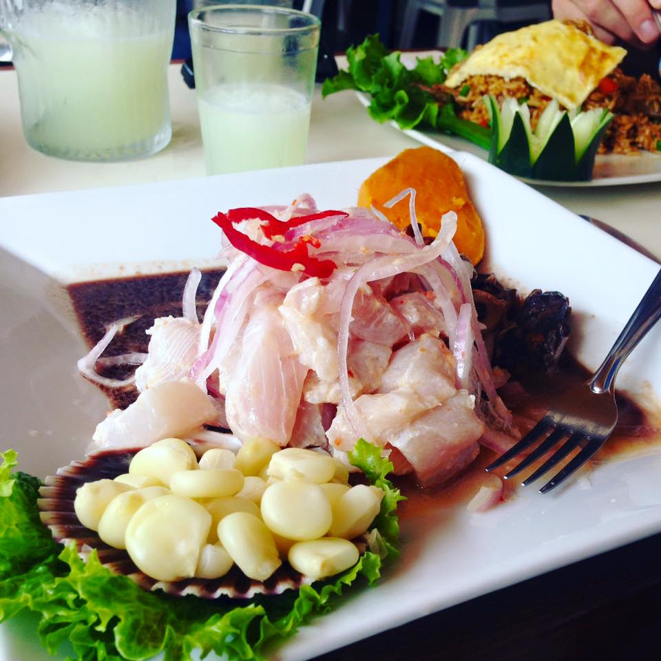 Which was delicious. I had two kinds of ceviche, which is raw fish cured in citrus juices.