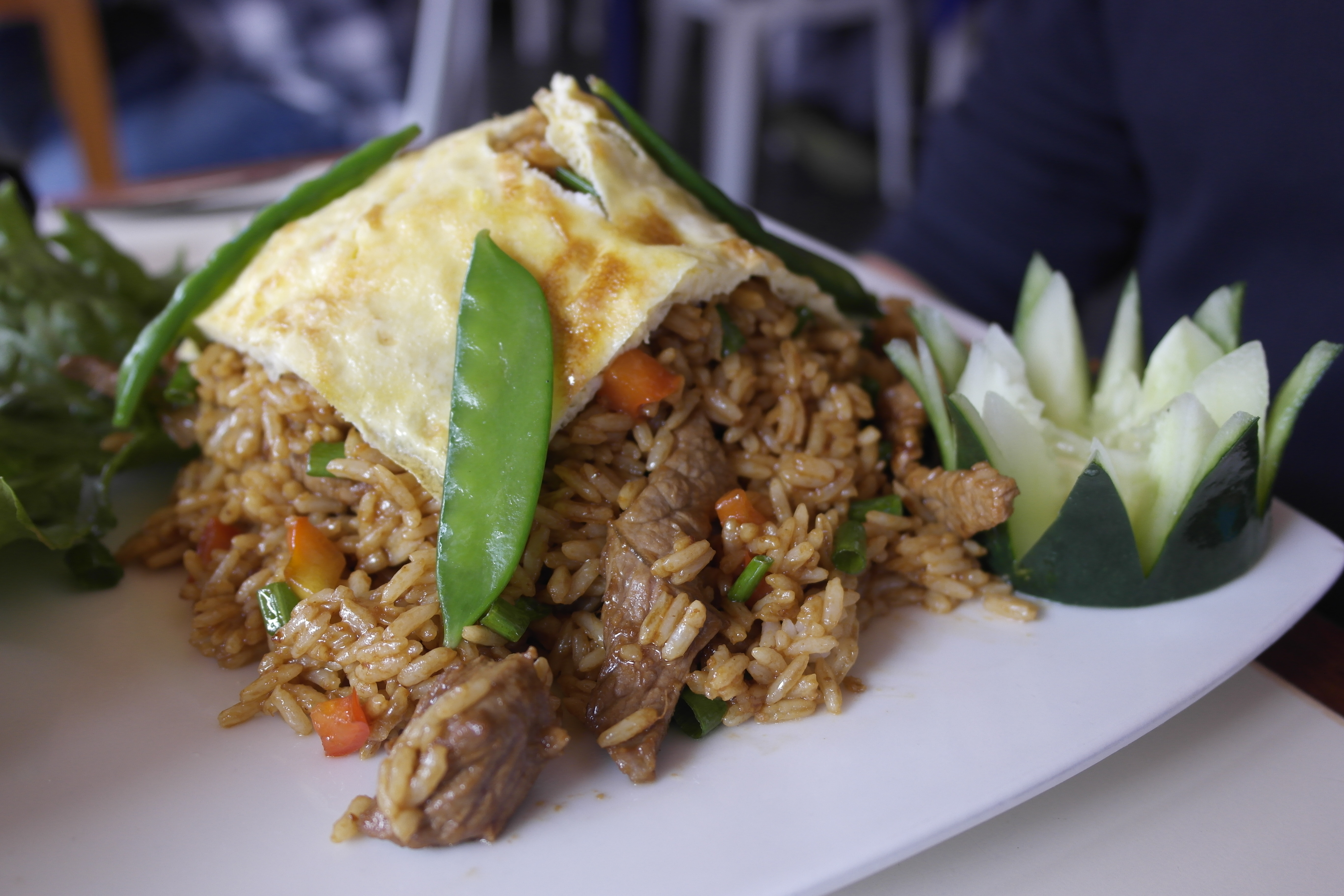 Andrew decided not to test his shellfish allergy and went for beef and rice.