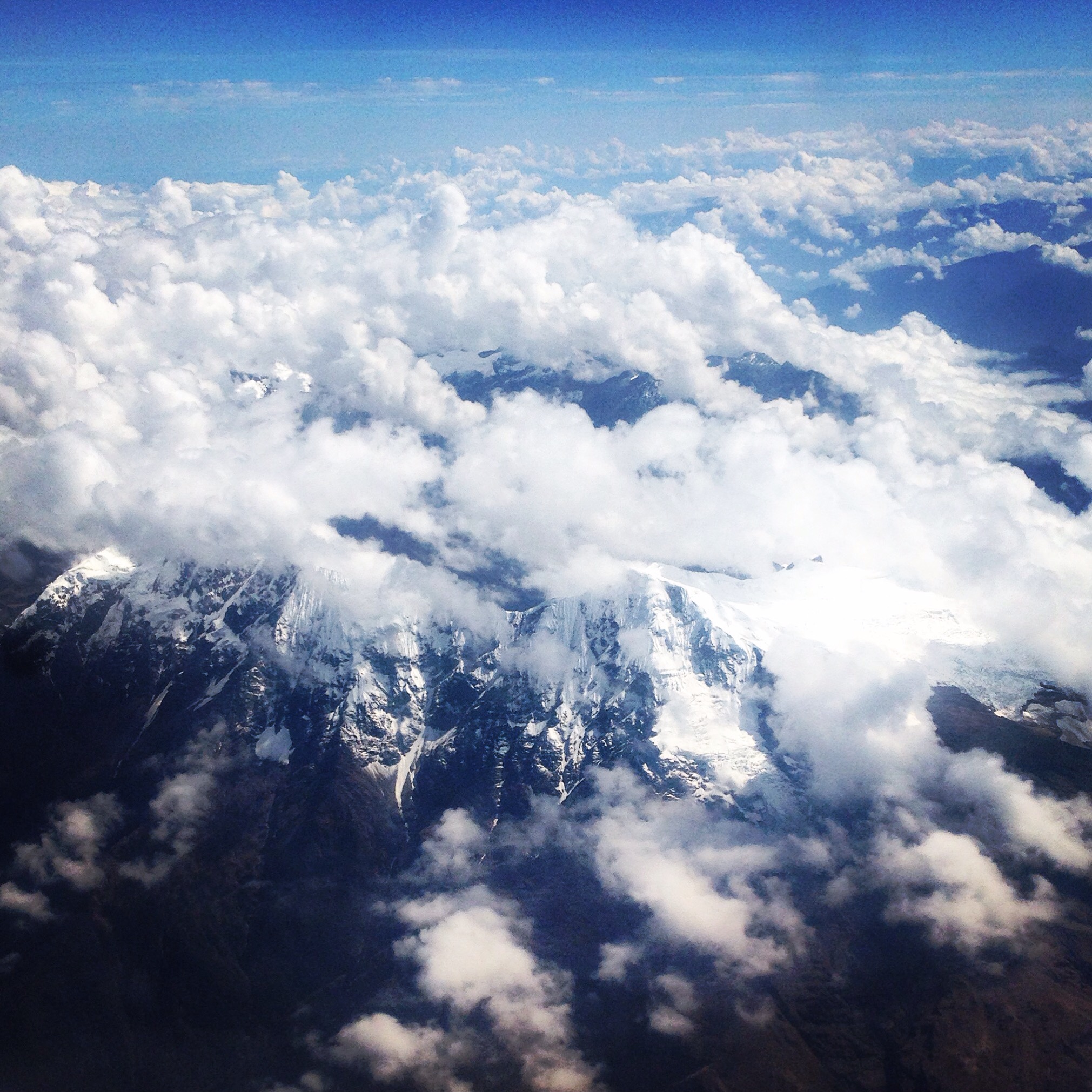 Flying over the incredible Andes on our flight from Lima to Cusco