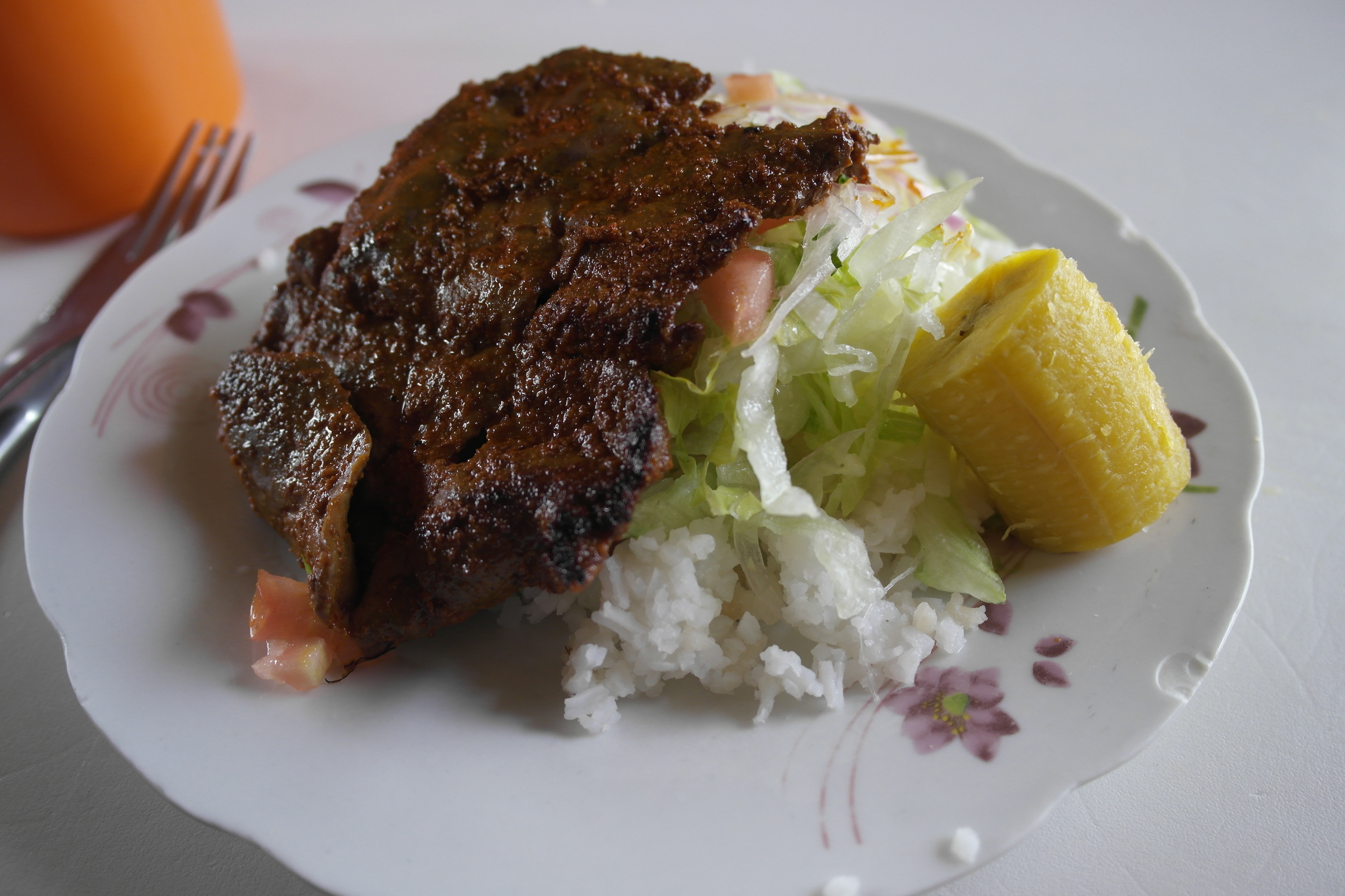 My Spanish wasn’t good enough to really understand what the second courses were (although I could see the chicken had run out) so I picked randomly and we ended up with mystery meat, rice and salad.