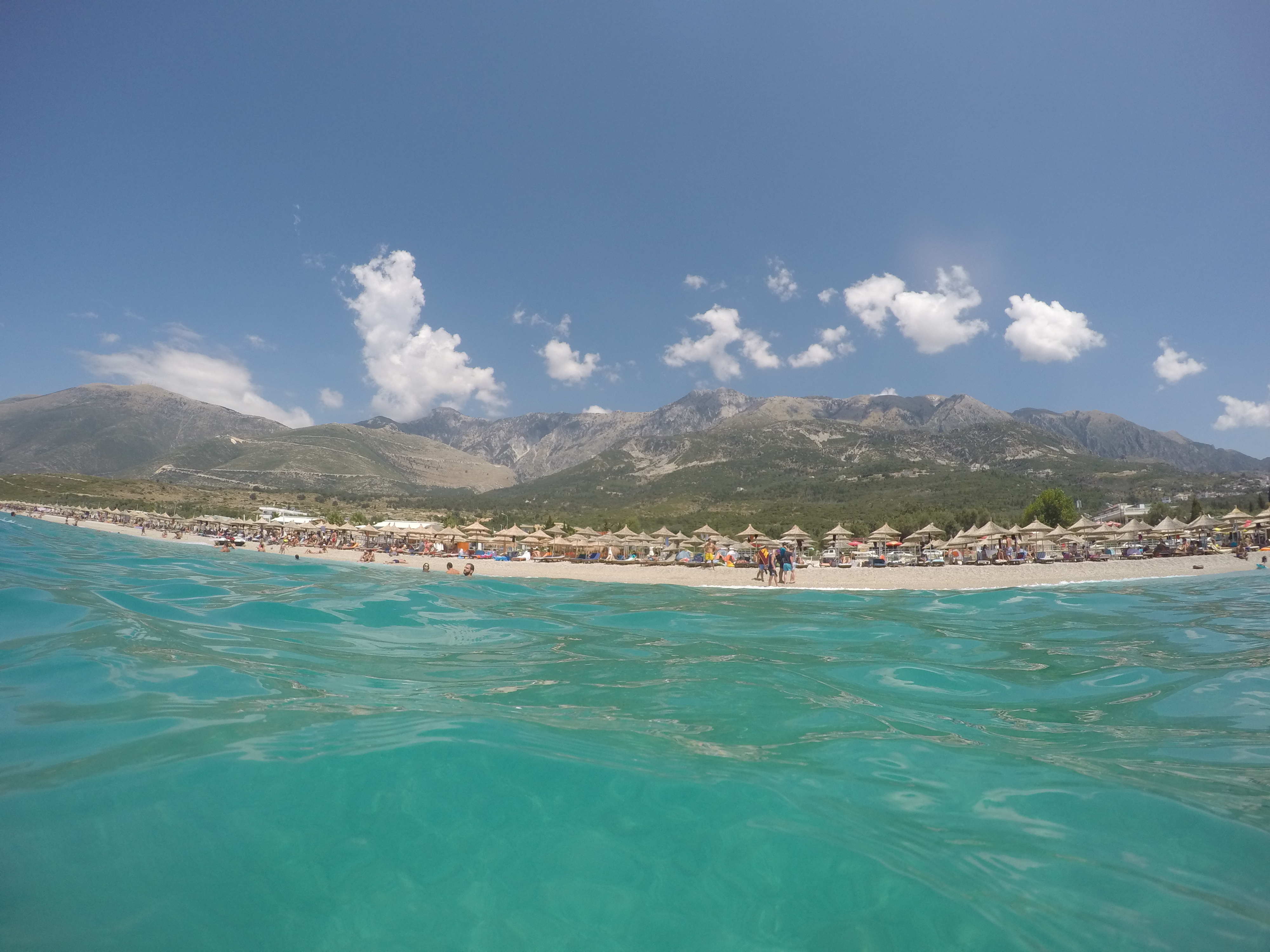 The majority of people holidaying here are Albanian and the beaches certainly aren’t sardined with umbrellas and sun lounges like in Greece and Italy. The water is stunningly clear and blue and behind the beach is the most amazing mountain range. Best of both worlds!