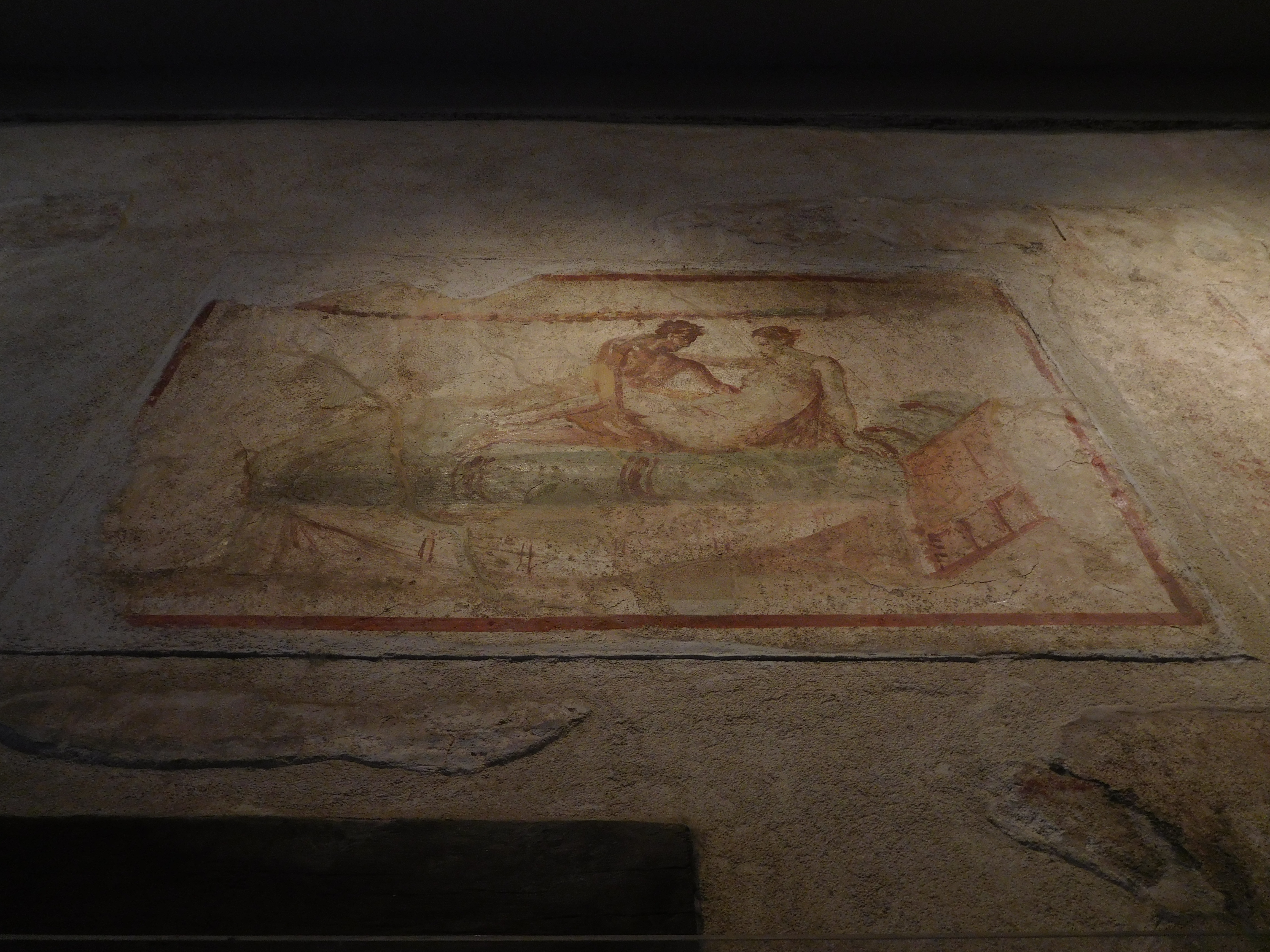 The busiest part of Pompeii was, predictably, the ancient brothel. Amazingly, the frescoes on the walls in the brothel survived the eruption and so the ‘menu’ of services is still clear.