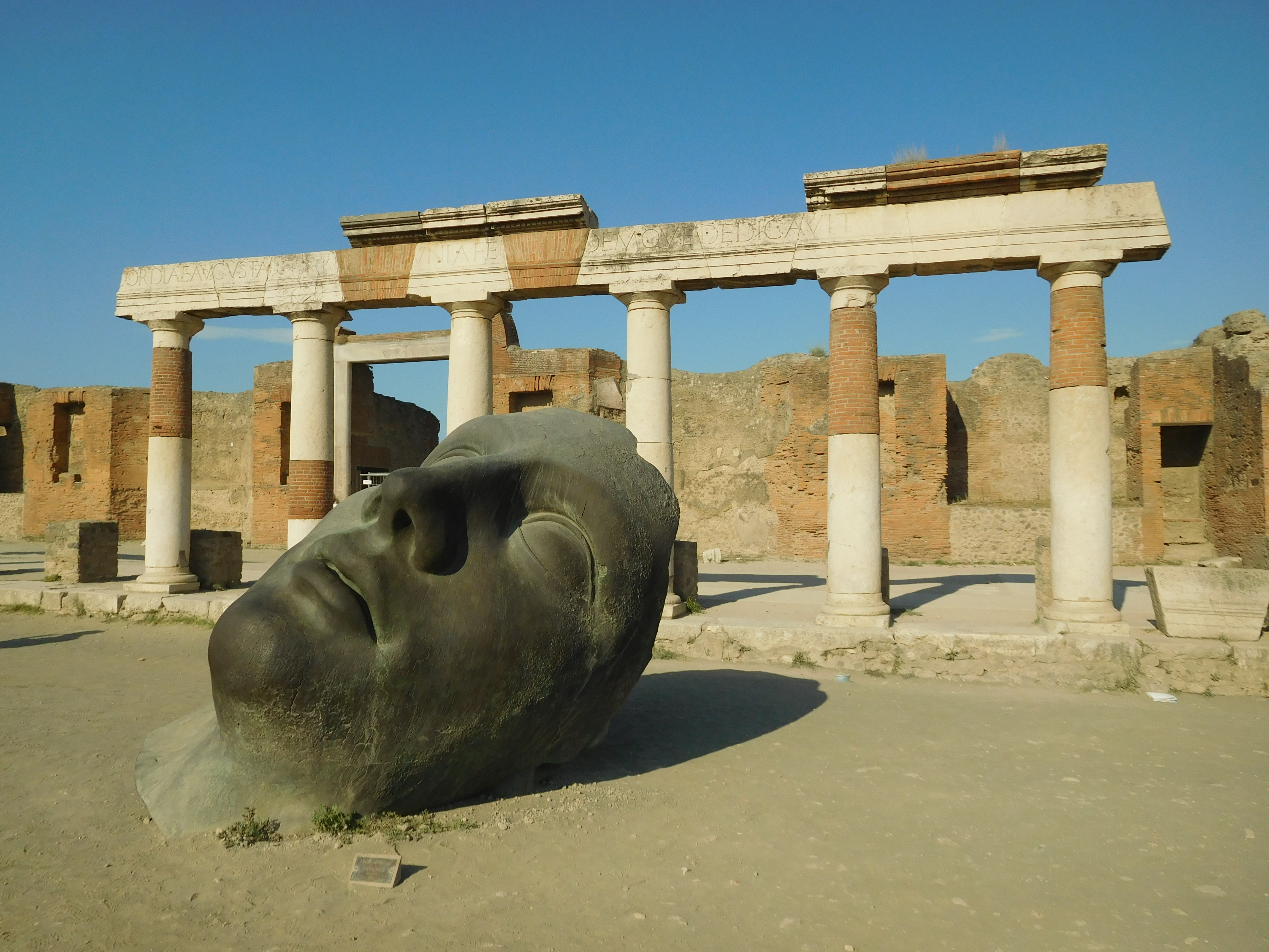 After exploring we jumped on the train and headed to Herculaneum’s famous cousin Pompeii. There is rather amazing art installed throughout Pompeii. The effect of huge ‘broken’ statues really gives the feeling of something that was once much grander.