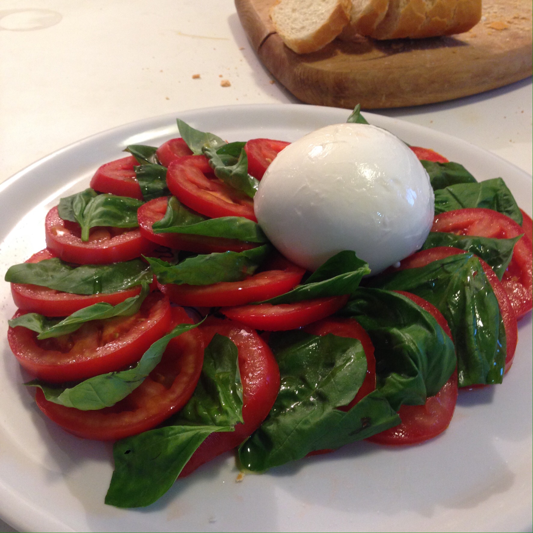 Andrew and I bought delicious buffalo mozzarella, fragrant basil and beautifully ripe tomatoes (nothing like the slightly green, huge tasteless ones you often get in Australia) to make Caprese salad. According to Giovanni, yet again, you’re not meant to cut up the mozzarella until you’re eating it because otherwise you lose the milk inside. So it’s not good when you go to a restaurant and the mozzarella is already sliced.